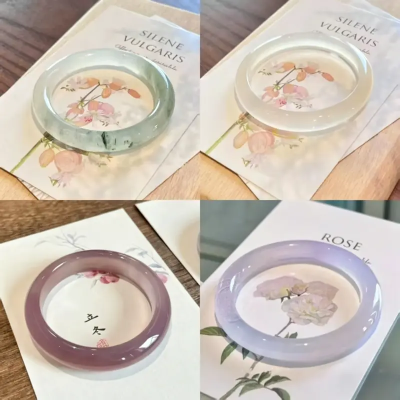Layering& Stacking: Wear them alone as a statement piece, or stack them together for a dreamy, multi-color look that showcases the different translucent hues.They also pair beautifully with natural jade or gemstone bangles for a curated layered style.