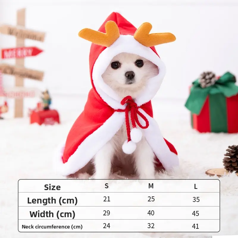 5. Cat Christmas Cape Reindeer Cloak Autumn Winter Warm New Year Pet Clothes Dog Shawl