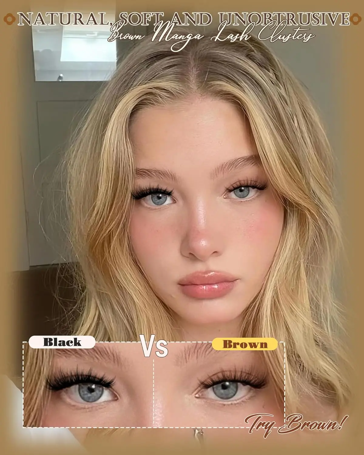 ·4. Upgrade Your Makeup Game With Brown lash extensions: Fluffy lash clusters designed to blend seamlessly with trendy hair colors like ash-blonde or soft apricot eye looks, brown lashes clusters create the perfect harmony. Achieve that effortless, cozy vibe with every wear