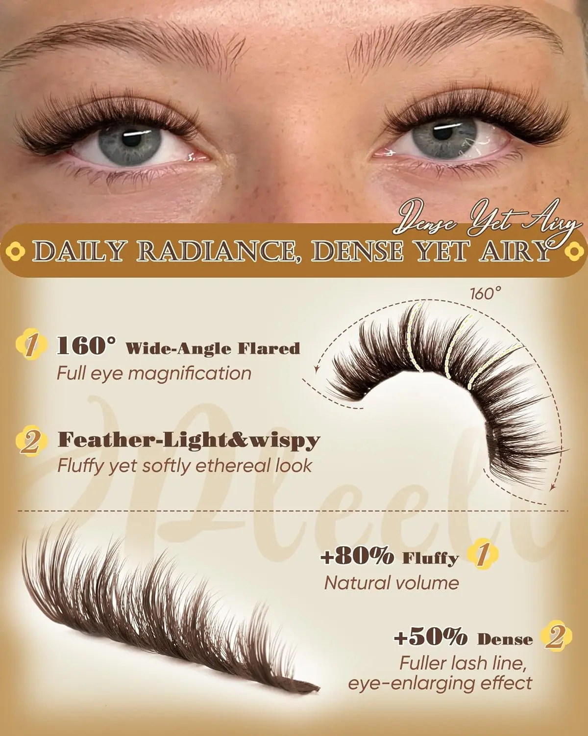 ·5. Daily Radiance, Dense Yet Airy: Brown lashes clusters cater to girls unsatisfied with basic eyelashes, craving lively, refined makeup without excess. Brown clusters lashes visually boost lash fullness with a soft tone—no heaviness, crafting clean, dimensional eyes