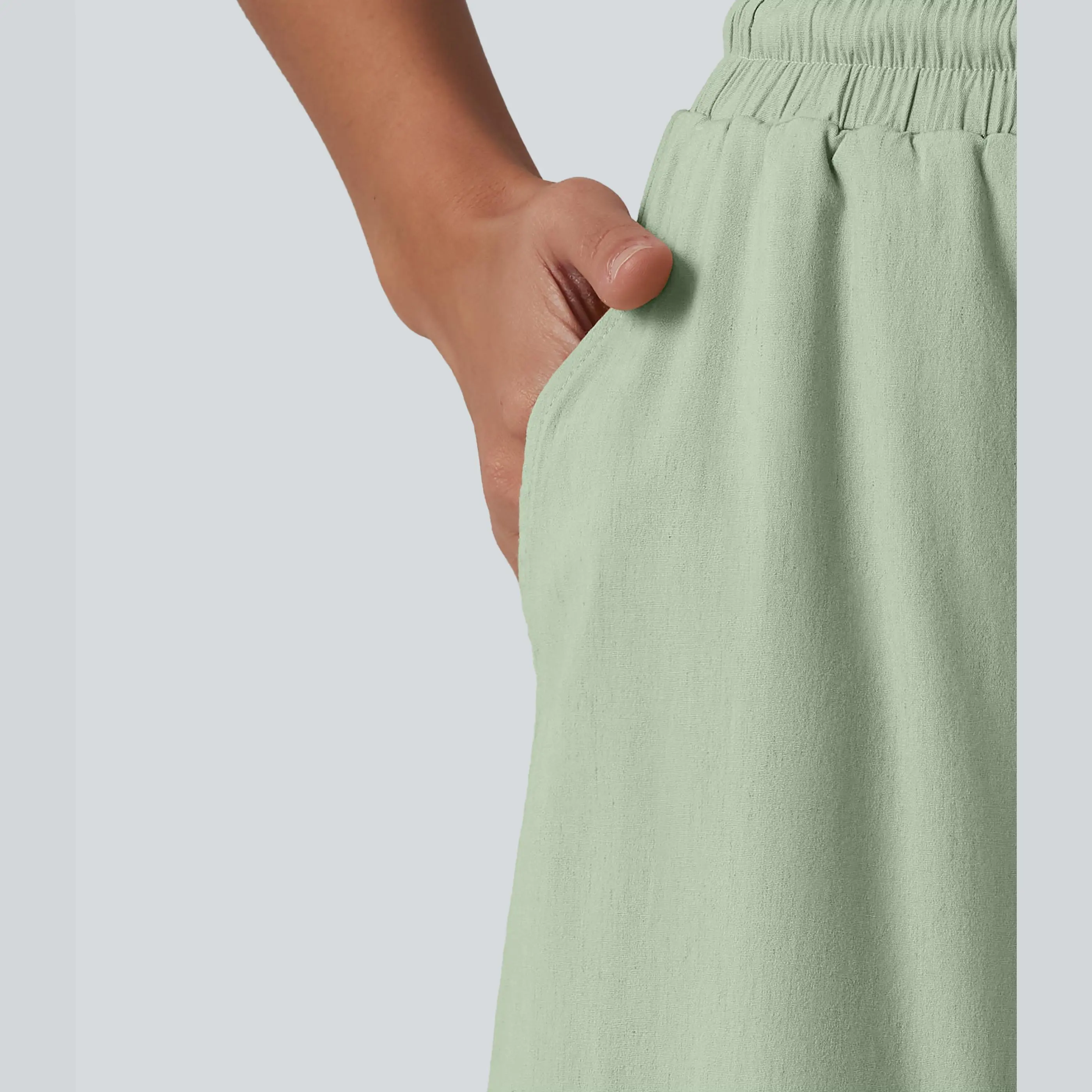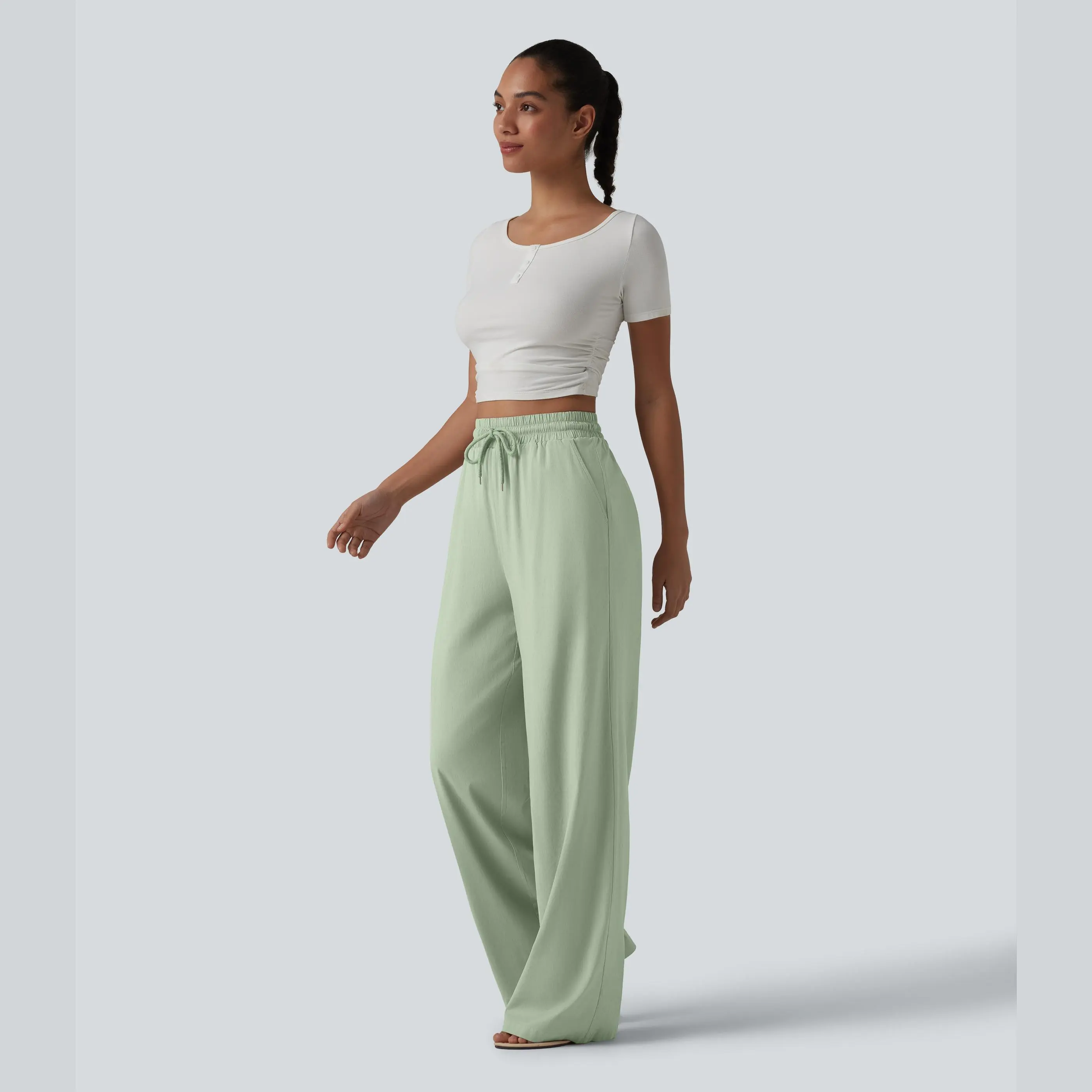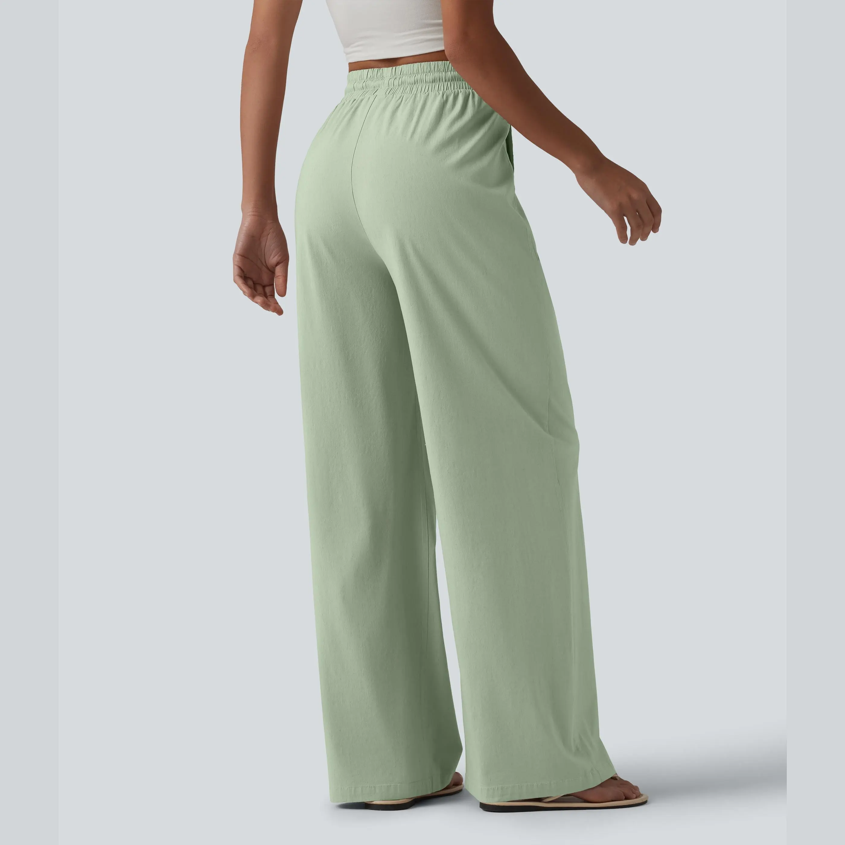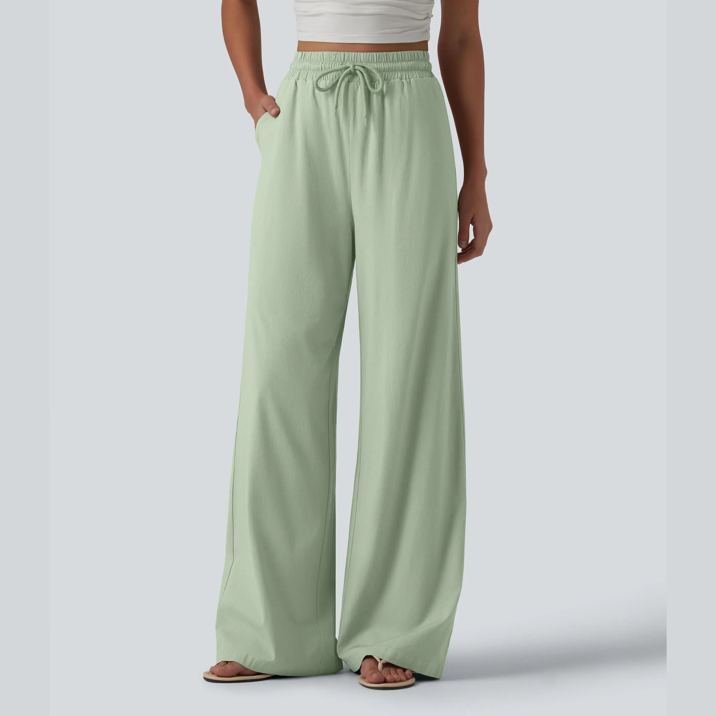 Halara High Waisted Drawstring Wide Leg Casual Stretch Linen Pants with Pockets