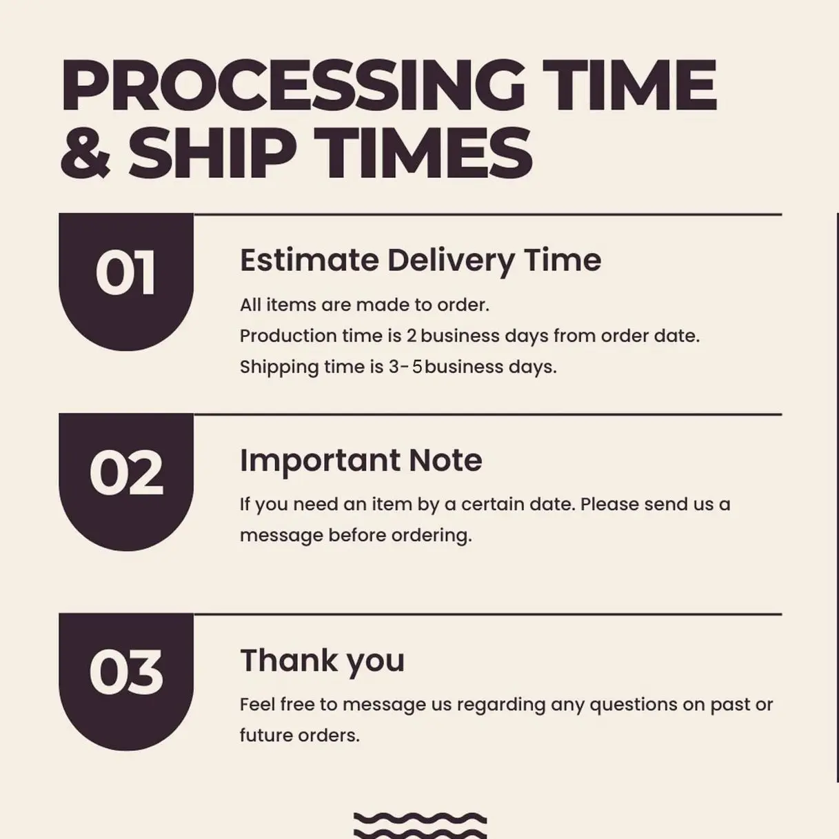·Peak times may cause delays; check our Shop Announcement for updates.