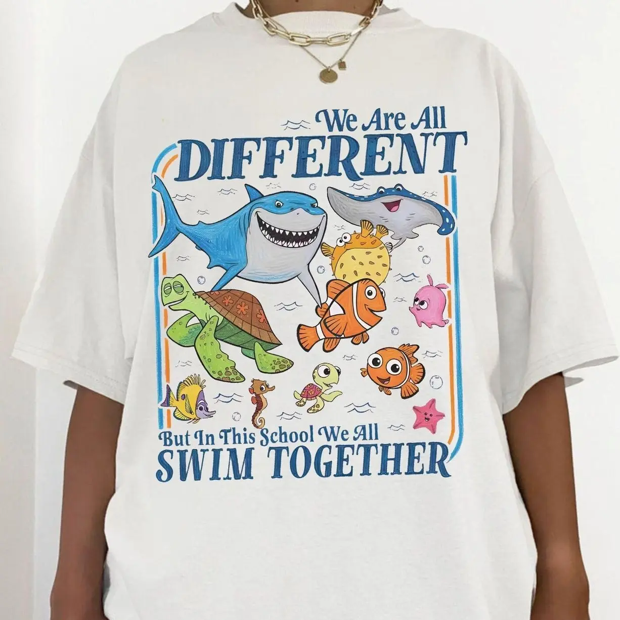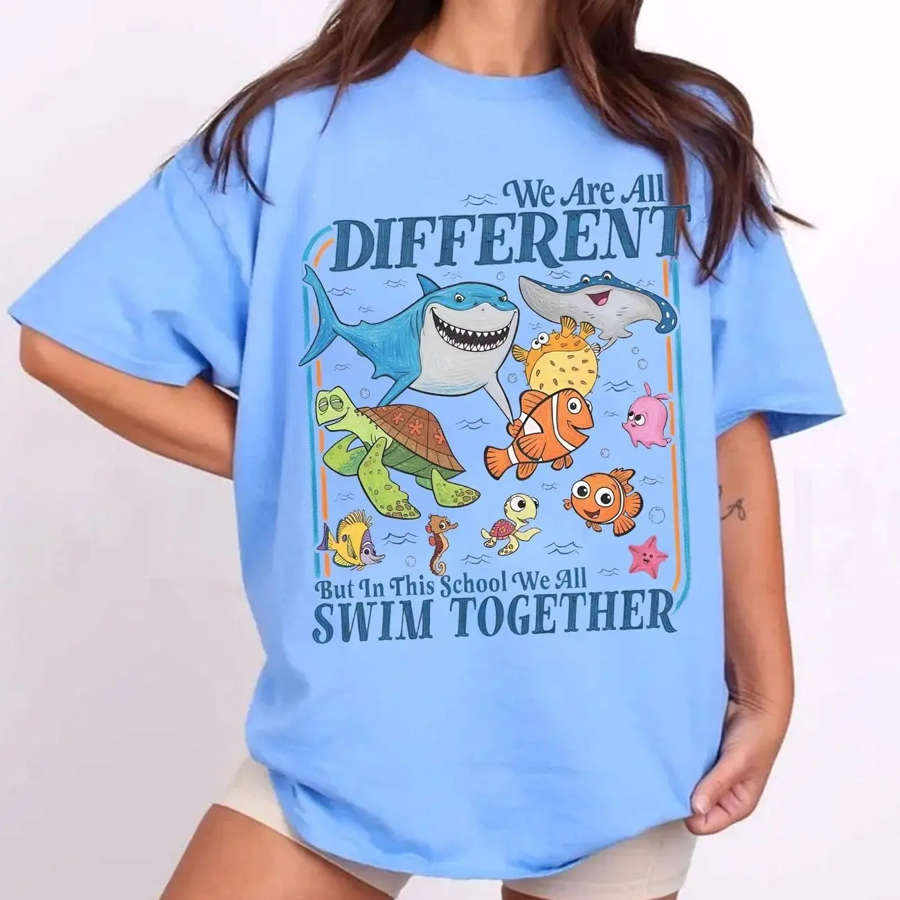 We Are all Different But in This School We all Swim Together Shirt, autism Shirt, Characters Group Sweatshirt, autism acceptance Tee A