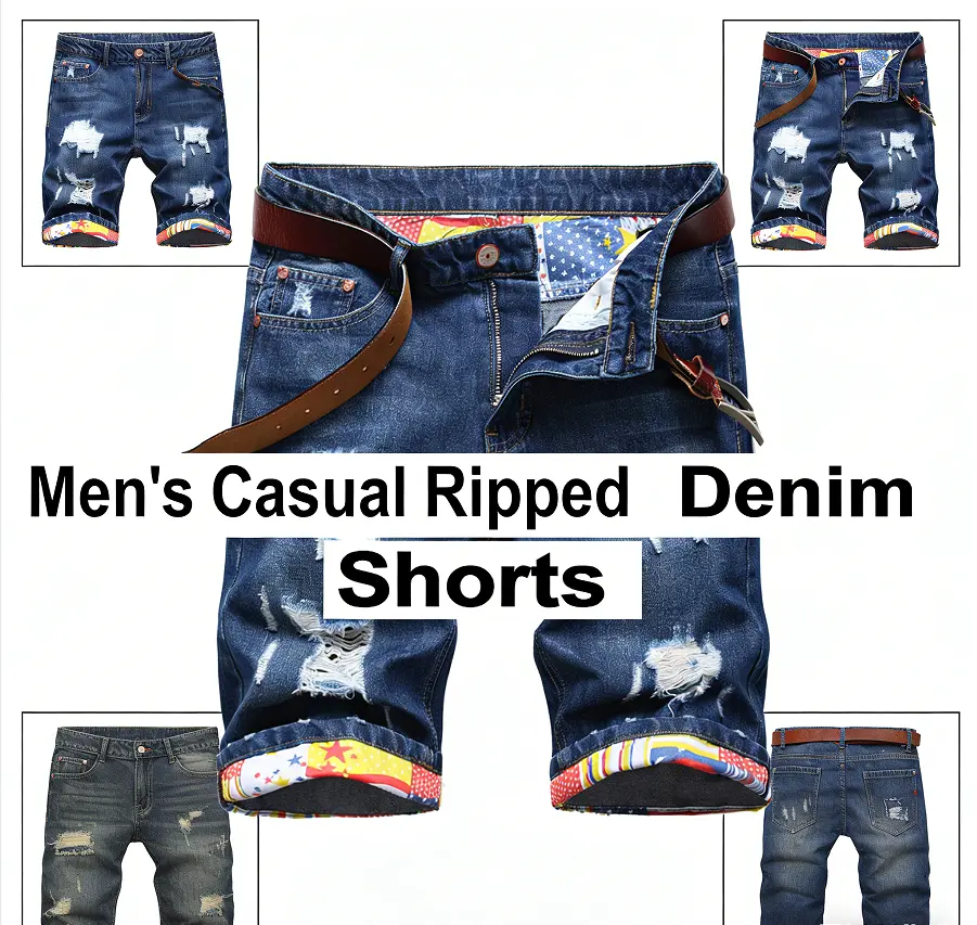 ·Slim fit, distressed, and ripped denim shorts. Perfect for a casual look. 🌟