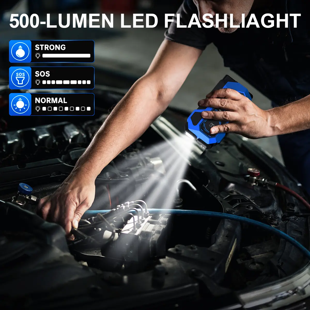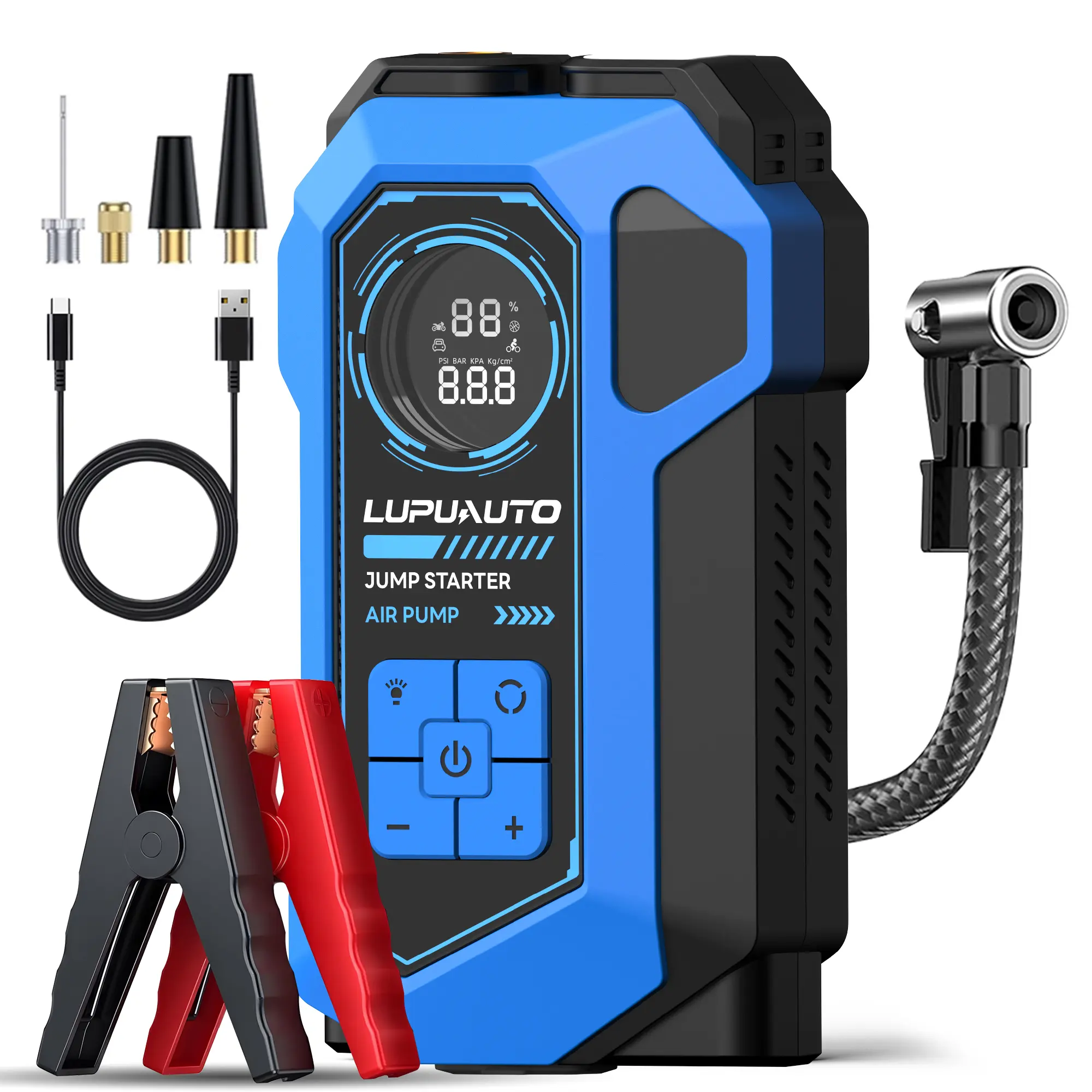 LUPU AUTO multifunctional portable tire inflator, 4 preset modes, automatic stop, LED display, intelligent safety indicator, fast charging for phones and tablets, suitable for car tires, bicycles, and swimming rings