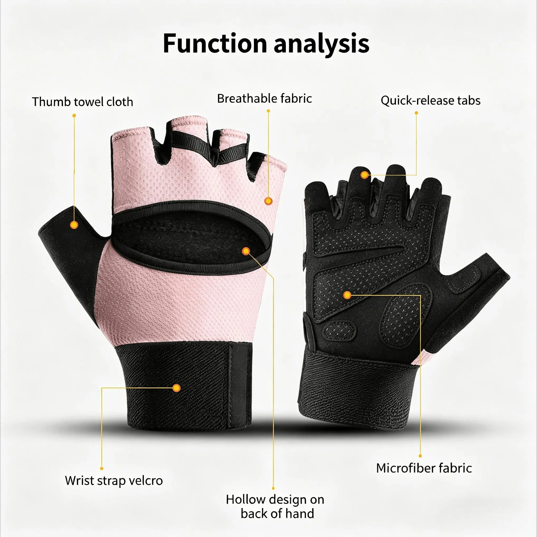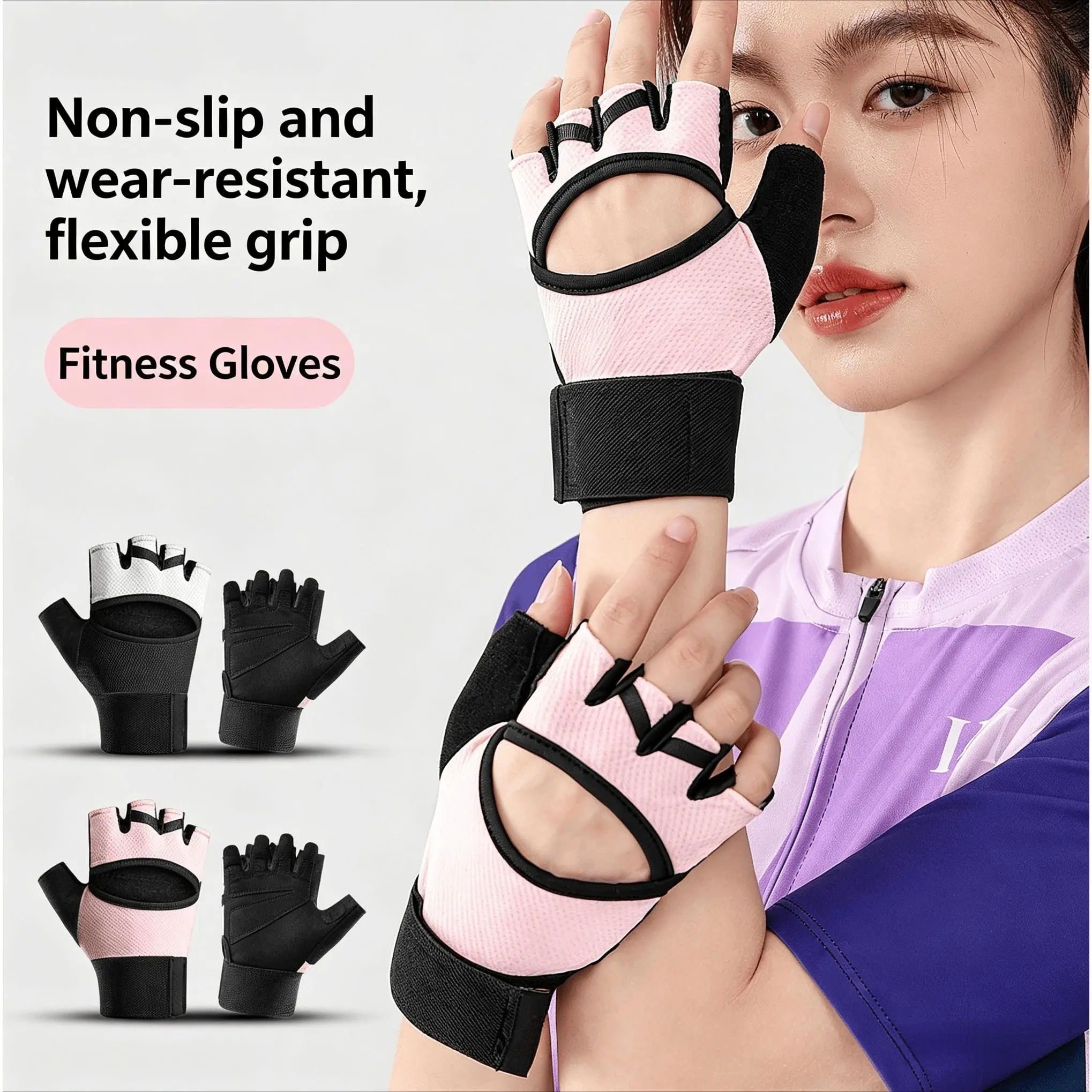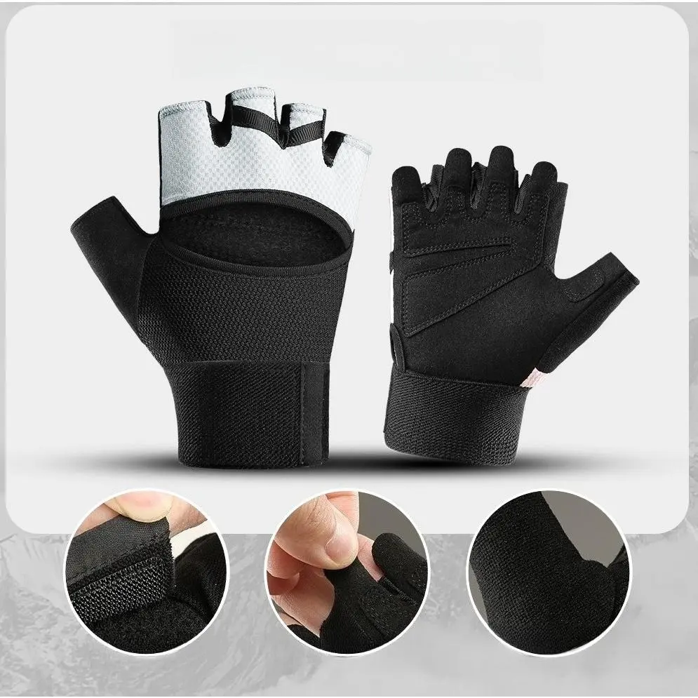 Half-Finger Breathable Cycling Gloves for Men & Women, Padded Bike Gloves with Wrist Wraps Support & Adjustable Straps, Full Palm Protection for Road & Mountain Biking