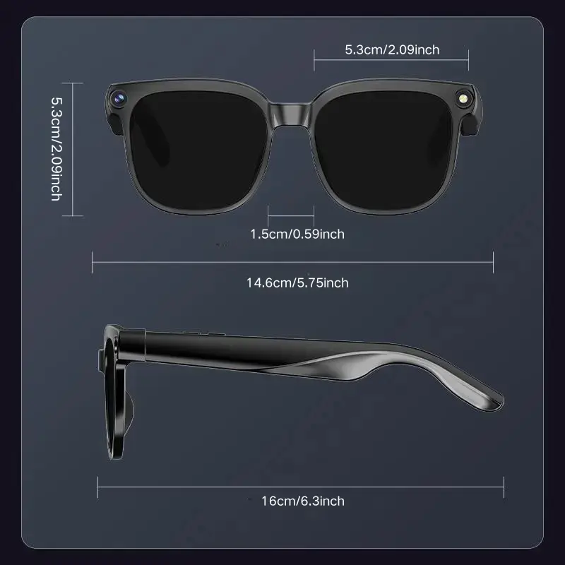 Smart AI camera glasses with 8-megapixel photochromic lenses, adjustable via buttons and touch control. Suitable for travel and outdoor adventures, supporting 160+ languages, real-time translation, Bluetooth wireless wearable video recording, and UV prote