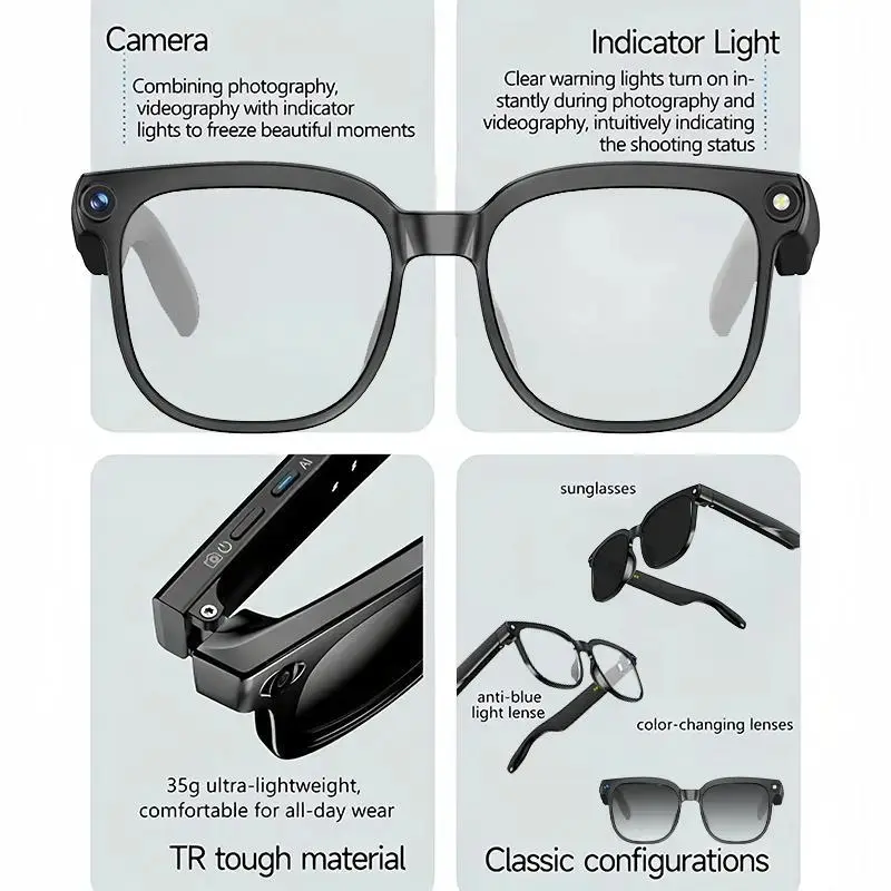 【8MP Photochromic】: Features 8-megapixel photochromic lenses that adjust color based on light conditions.