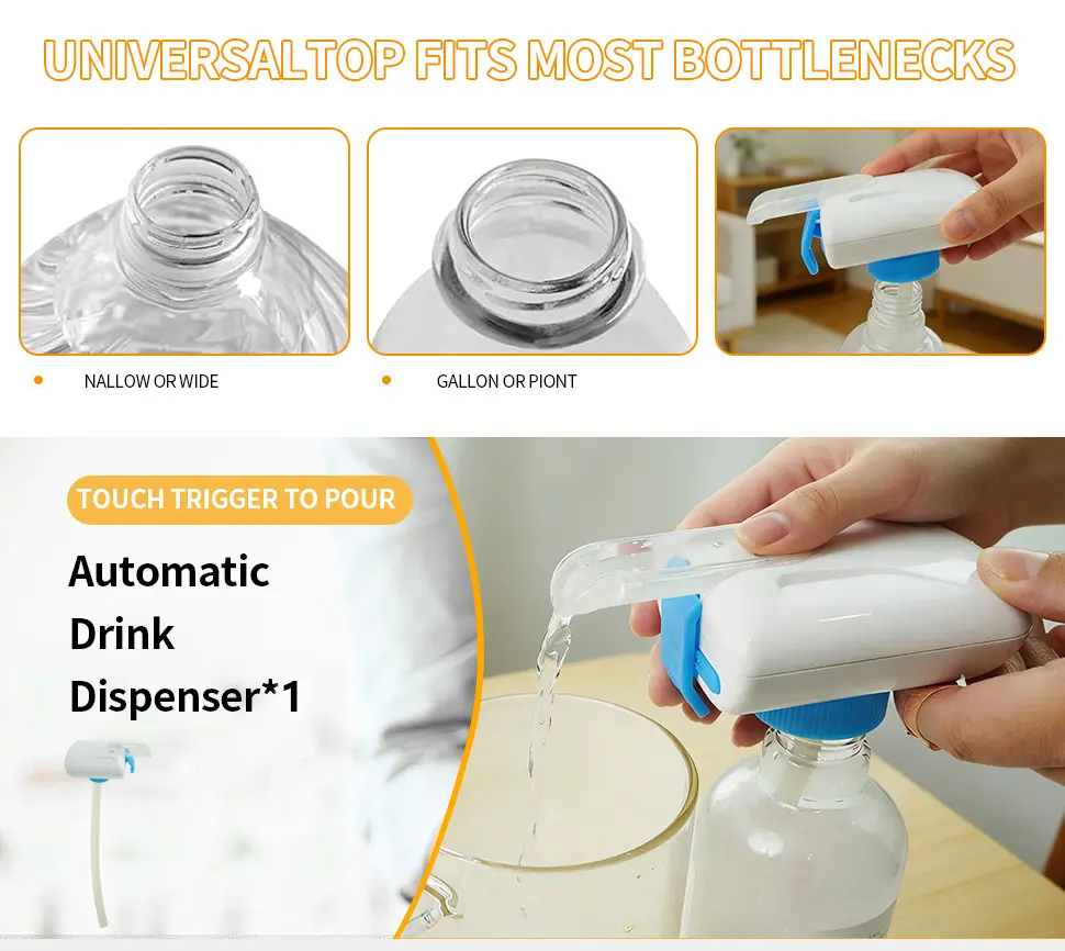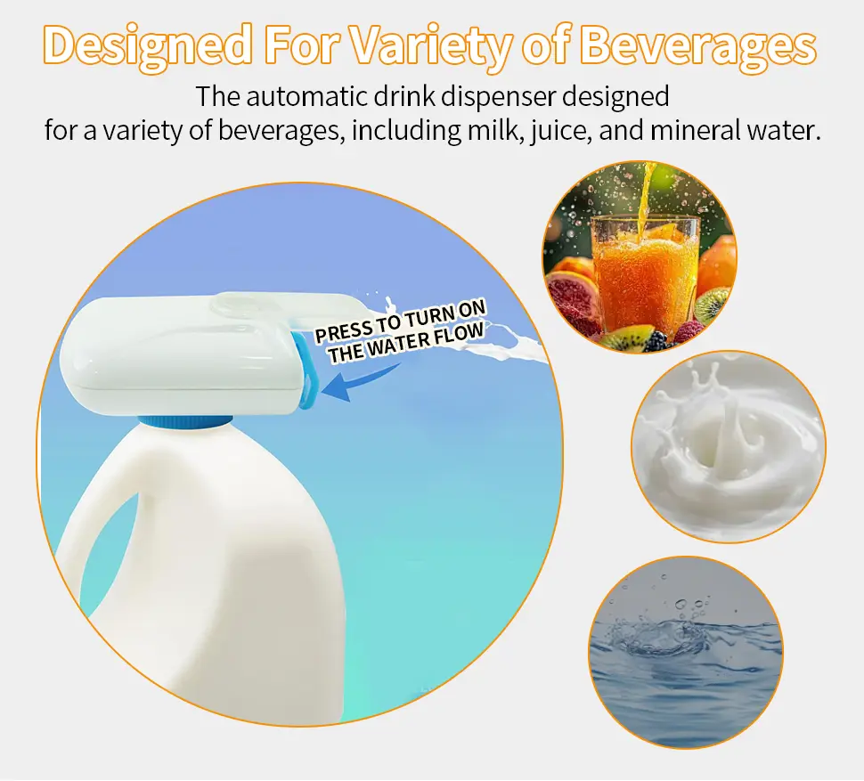 Tired of lifting heavy gallon bottles and cleaning up messy spills? This touch-operated beverage pump lets you pour water, milk and juice effortlessly with one press. No tilting, no dripping, no waste – perfect for home, office and parties.
