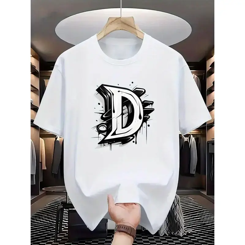 ·Single-Sided Printed T-Shirt: This men's sports t-shirt features a bold floral large letter "D" print. Perfect for casual summer wear, it offers a comfortable style.