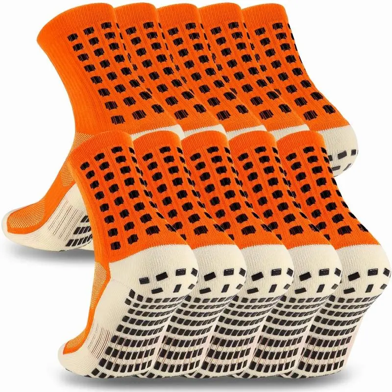 Non Slip Silicone Pads: Due to large-area non slip silicone grip pads on the bottom, these girp soccer socks can provide your feet with great stability, won't let you slide down when walking on tiles or floors