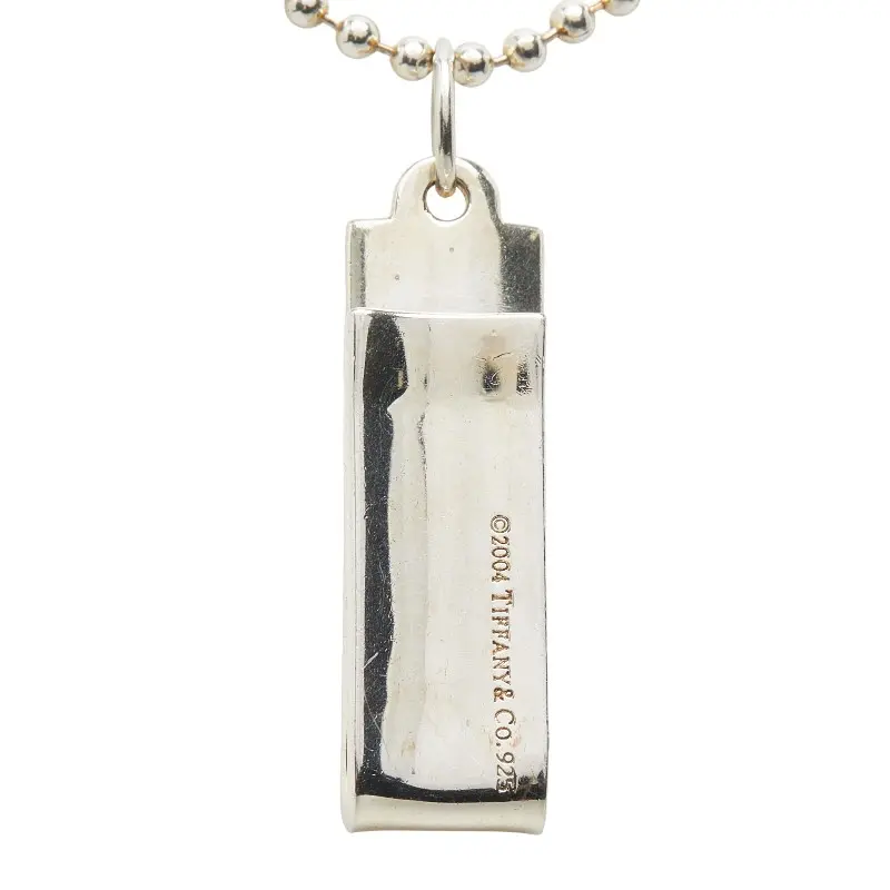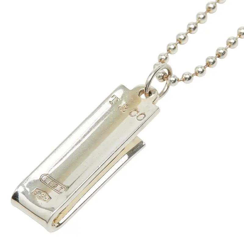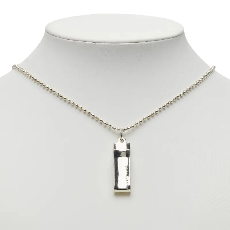 Pre-owned Tiffany & Co. Sterling Silver 925 (Ag925) Small Leather Goods TIFFANY&Co. 1837 Bar Pendant SV925 Long Necklace