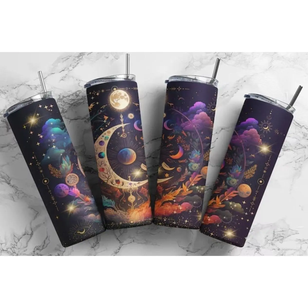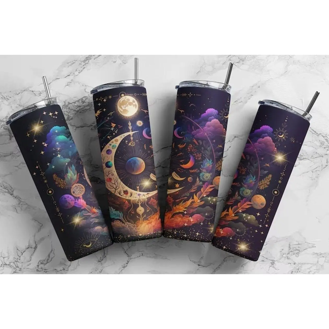 5. 20oz Skinny Tumbler | Celestial Moon | Galaxy | Astrology | Sublimation | Double Walled | Lid with Straw | Pretty | Cute | Boho