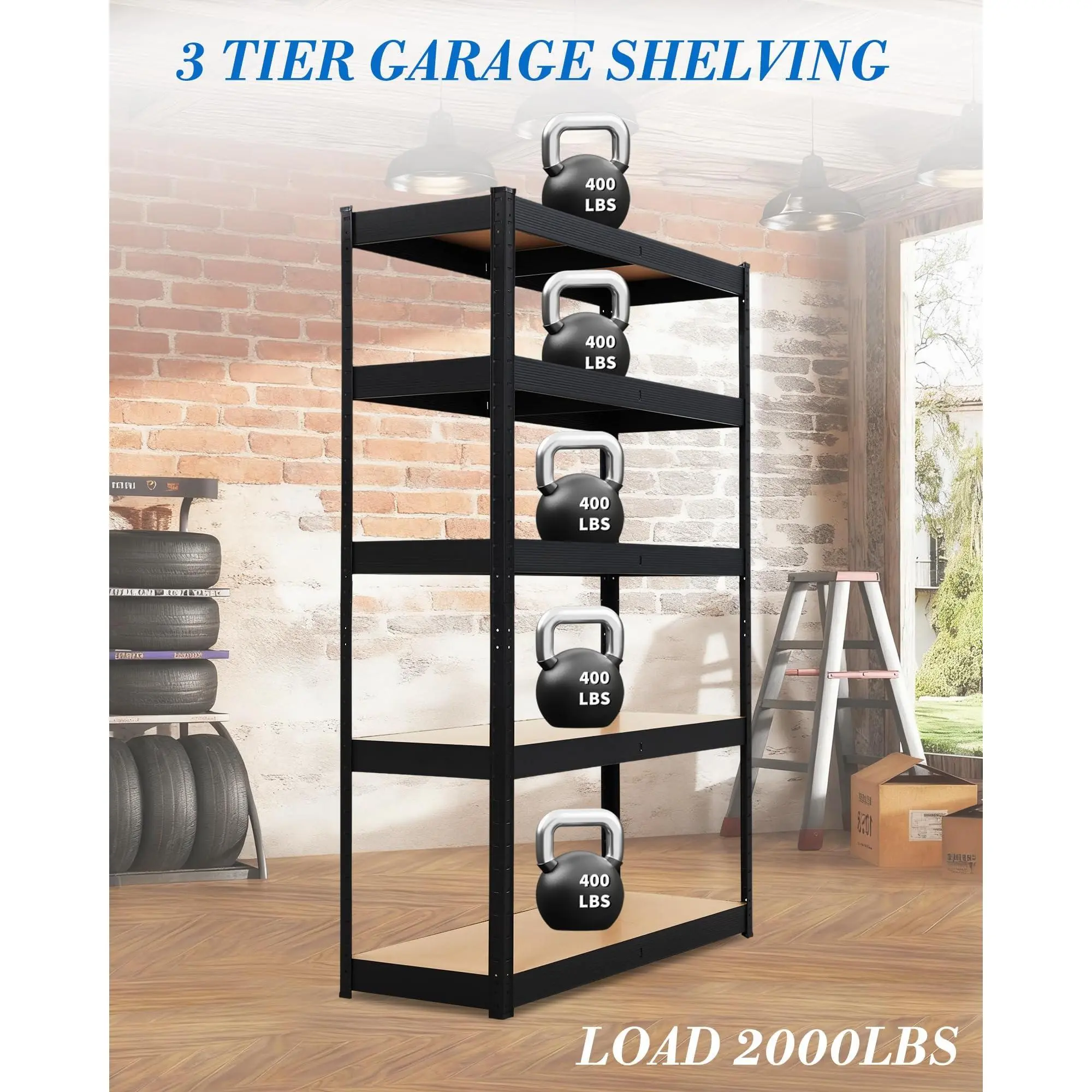 · Sturdy and Durable Construction: Our garage shelving units are made with a robust steel frame and thick MDF panels, supporting a maximum weight capacity of 2000 lbs. Garage shelving heavy duty ware Designed to bear the weight of your tools, equipment, and supplies, this construction ensures long-lasting performance, making it an ideal choice for storing heavy items like tools, equipment, and kitchenware in your garage, basement, workshop, or kitchen.