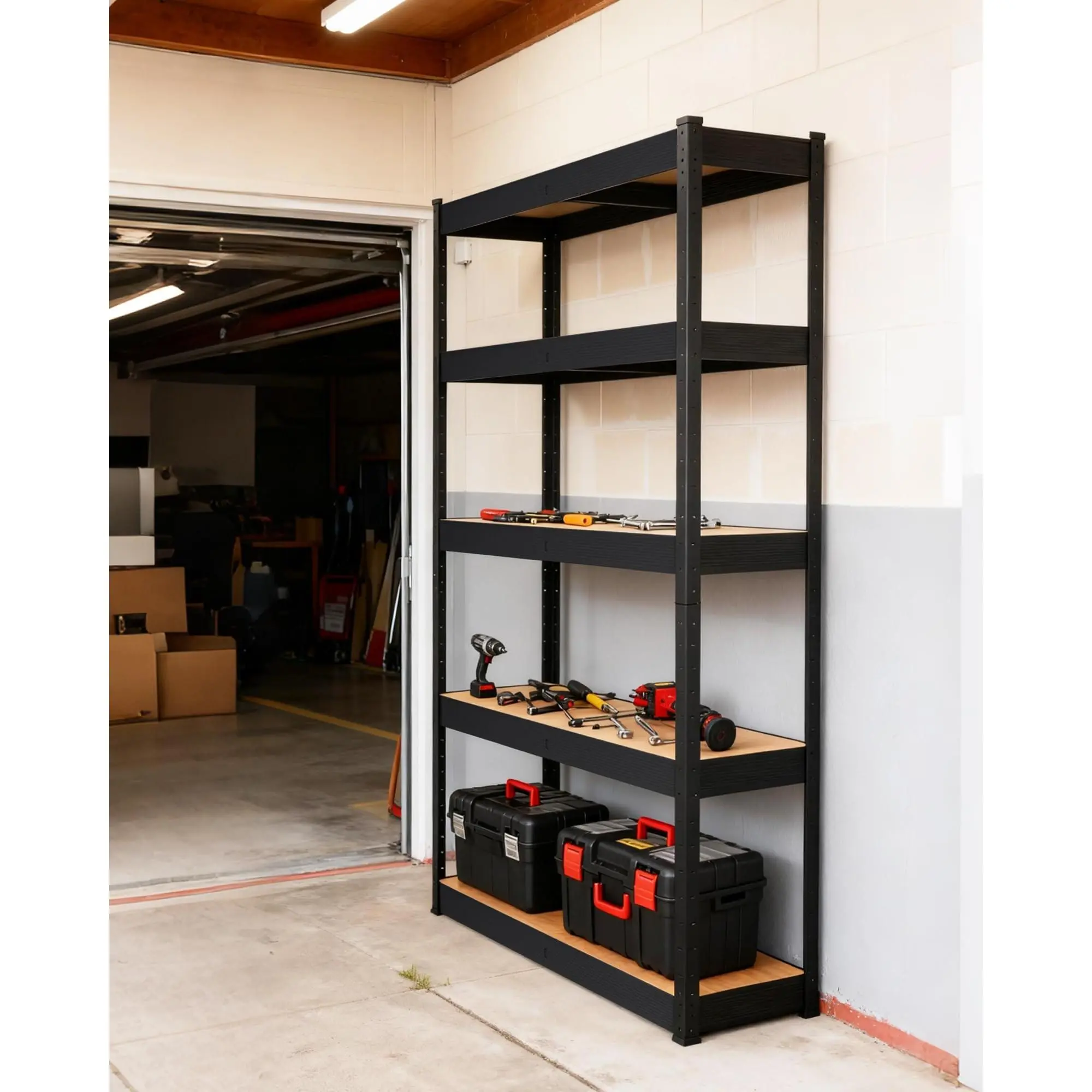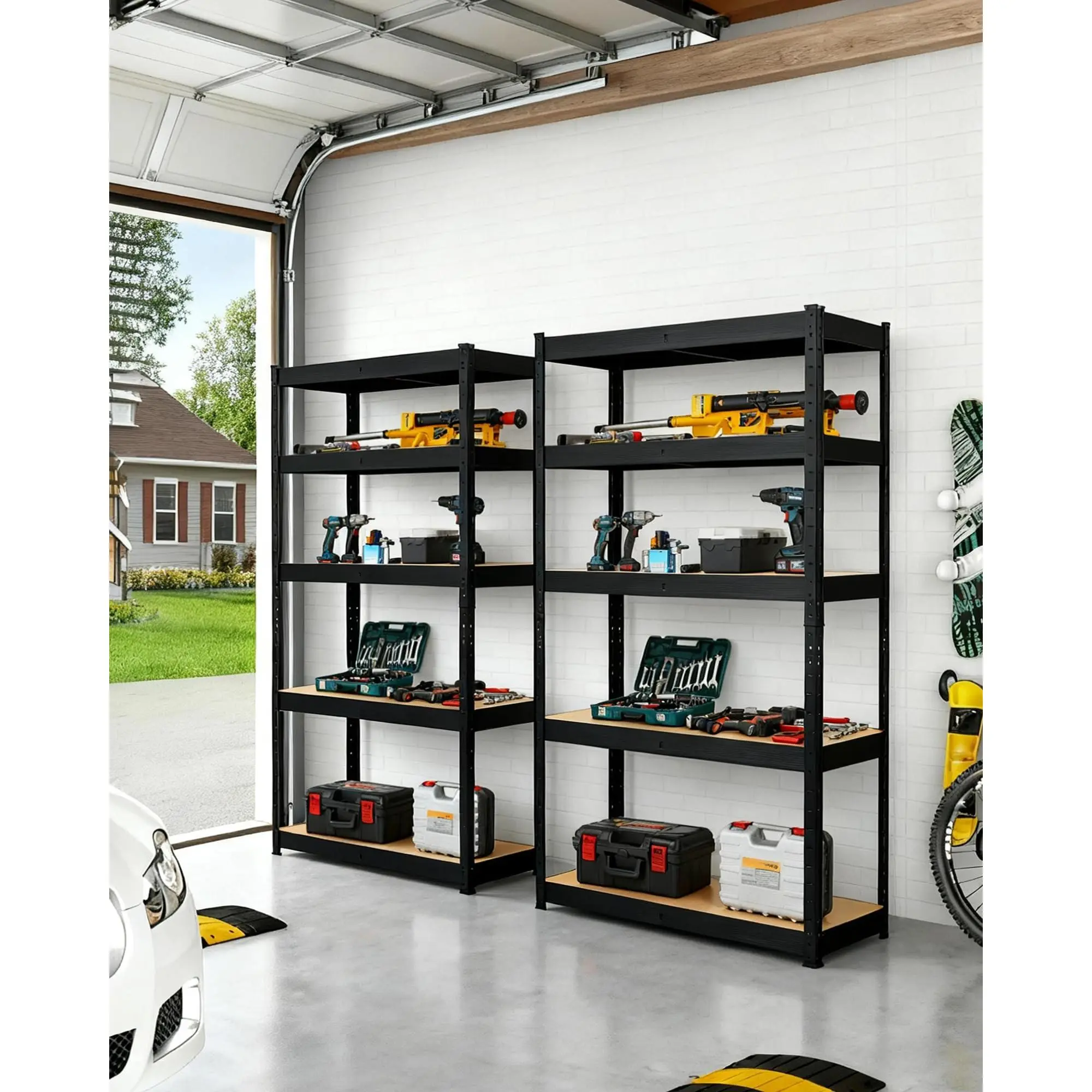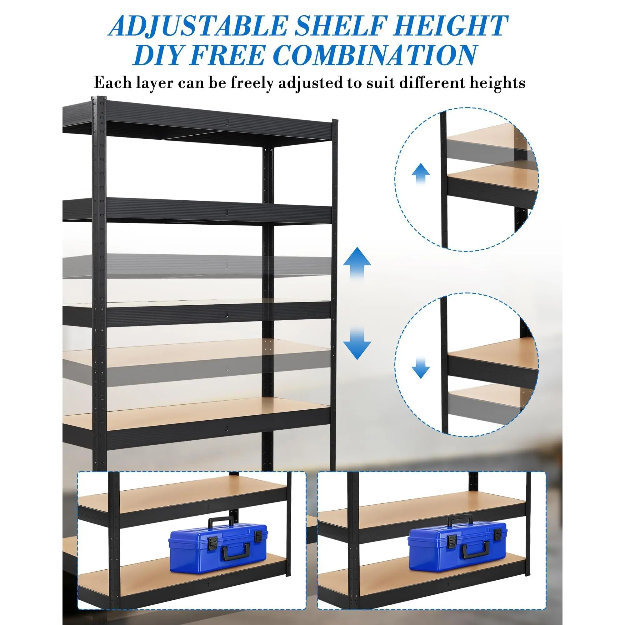 · Adjustable Shelves for Customizable Storage: Features height adjustable shelves for versatile garage organization. Easily reconfigure to store garage storage bins, bulky tools, small hardware, or gardening supplies. Maximize vertical space and optimize garage storage solutions efficiently.