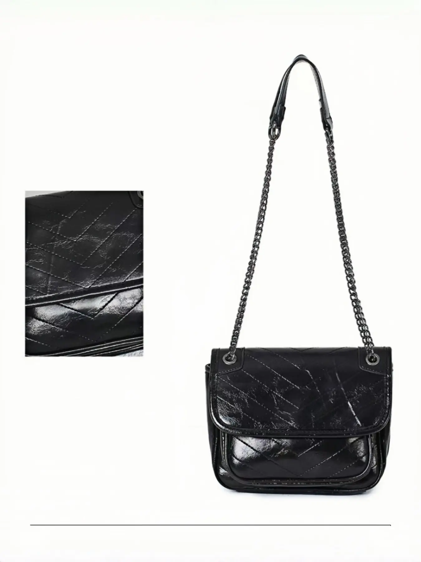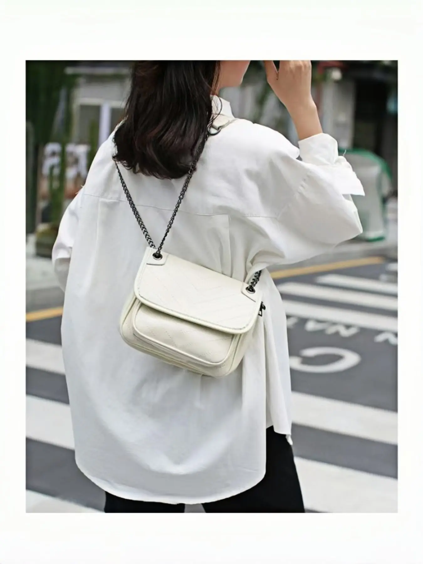 【Chain Strap】: Equipped with a chain strap for a chic look, perfect for both crossbody and shoulder wear.