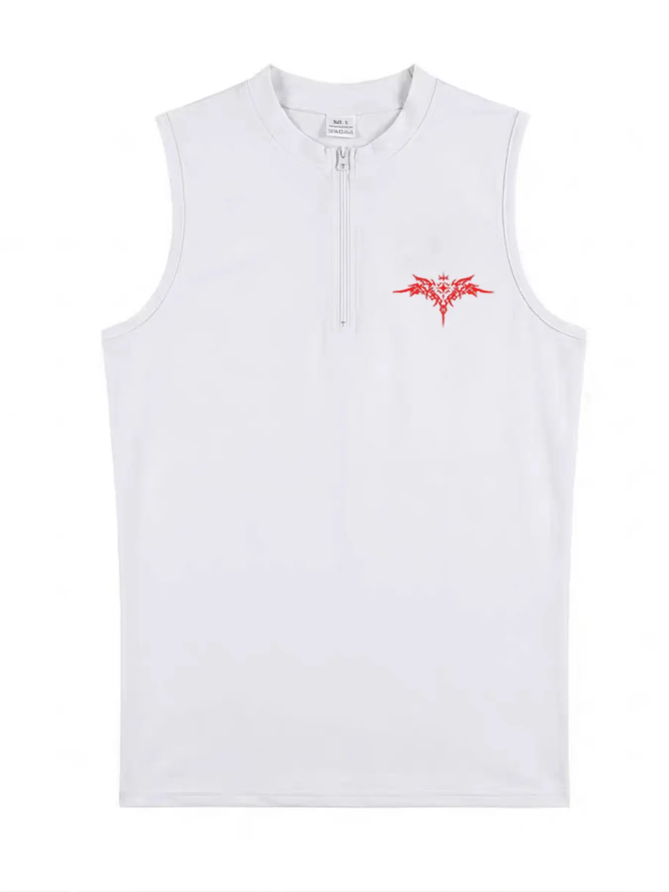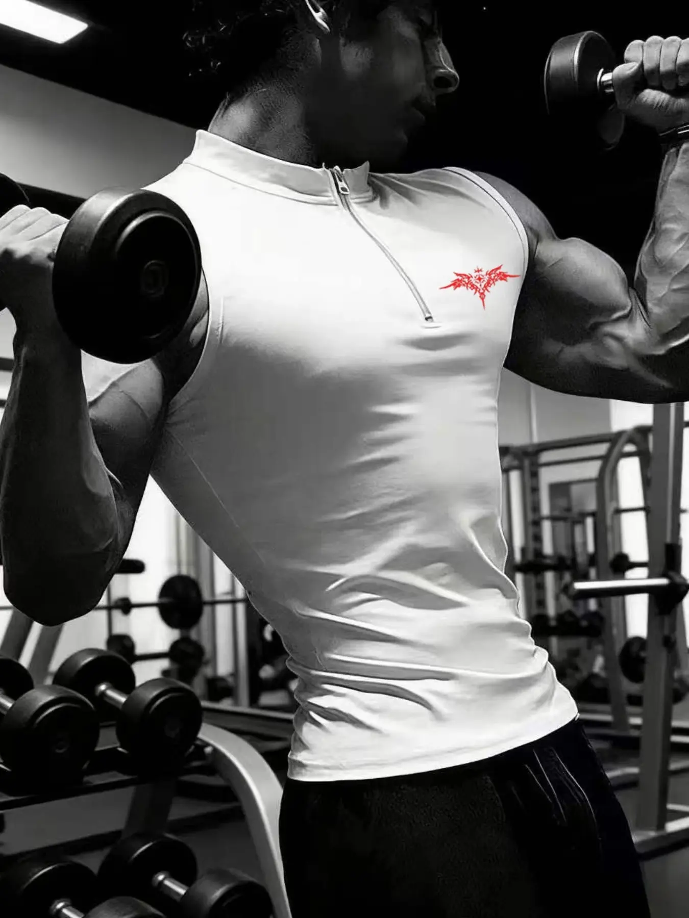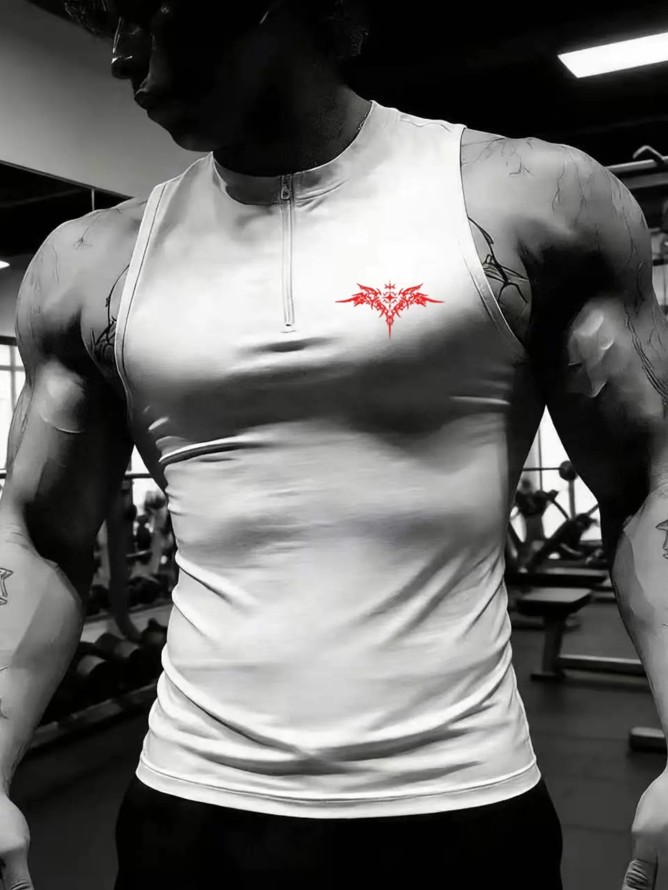 Mens Gothic Logo Quick Dry Sleeveless Shirt | Muscle Fit Half Zip Workout Tank | Gym Bro Streetwear Fitness Top