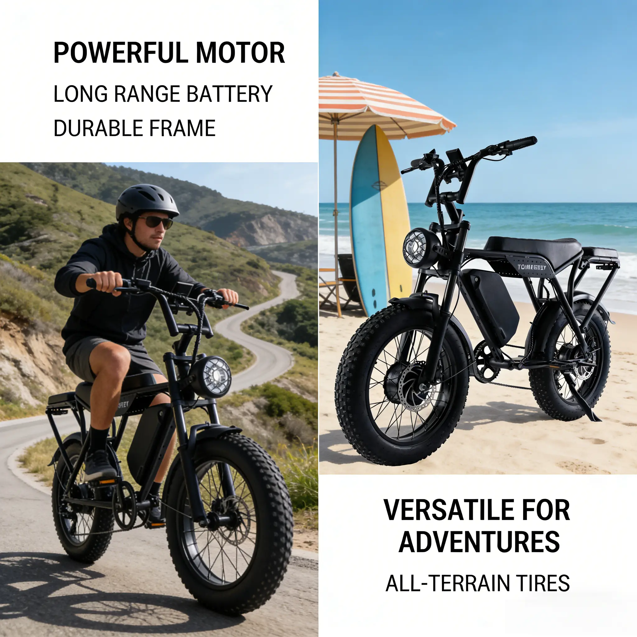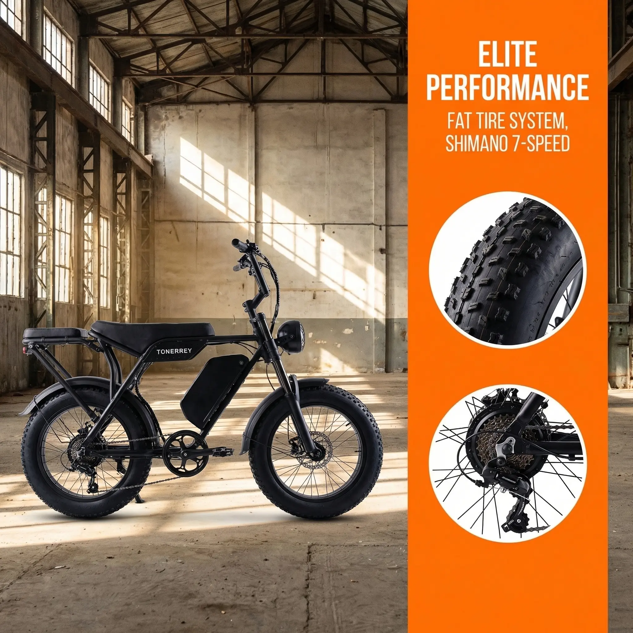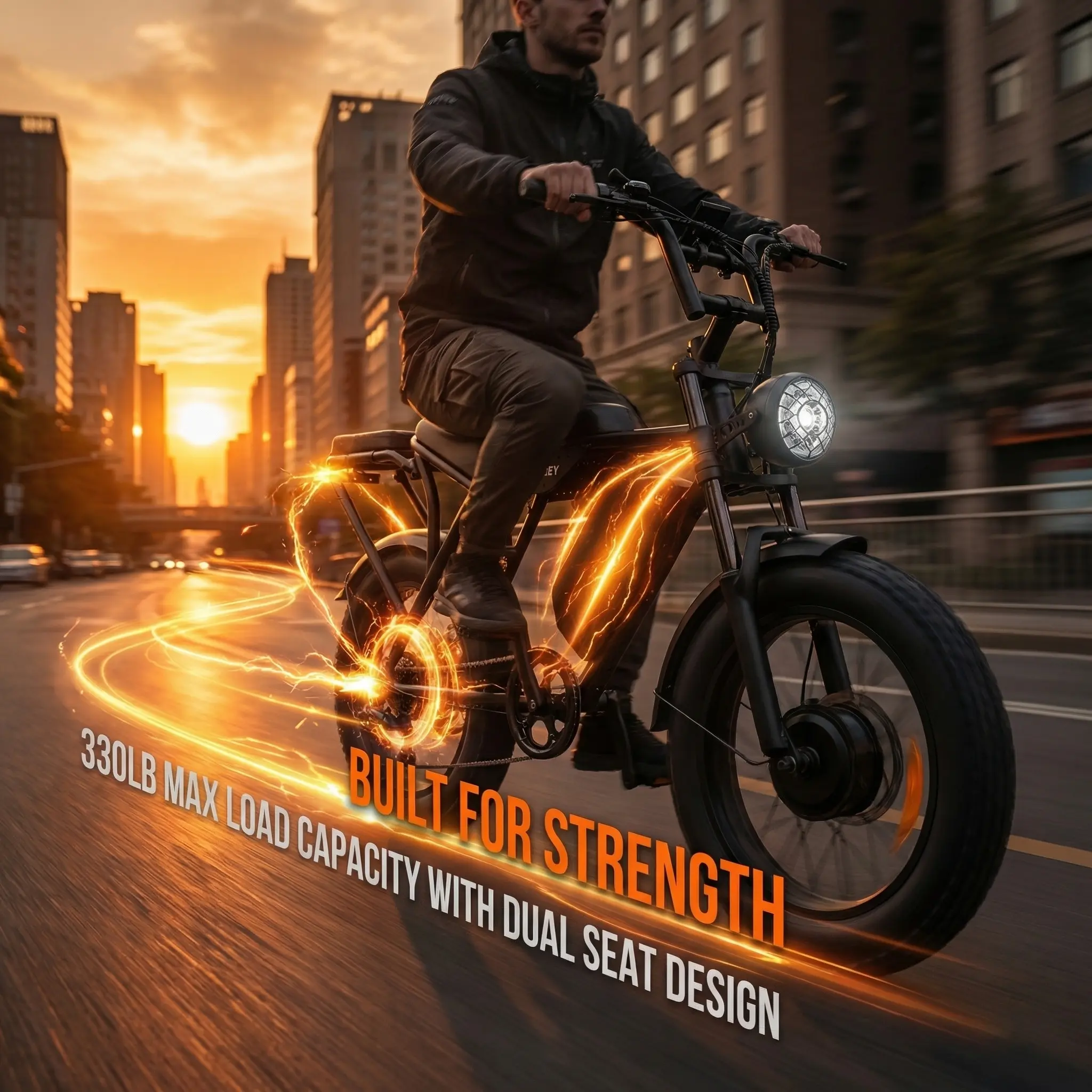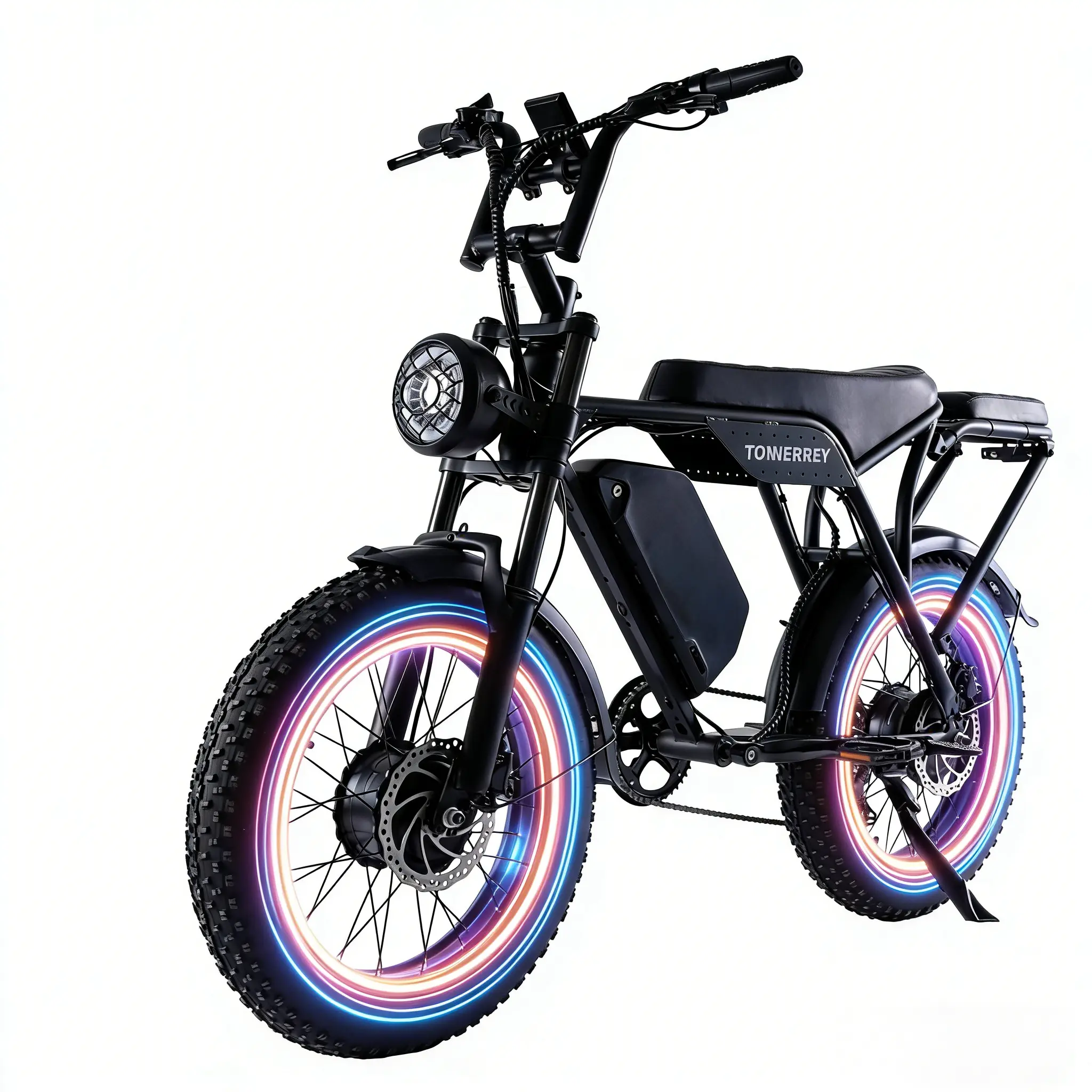 Equipped with 20"x4.0" fat tires, this e-bike provides exceptional grip on snow, sand, mud, and city streets. Navigate various terrains with confidence. The tires ensure stability and control, making every ride smooth and safe.