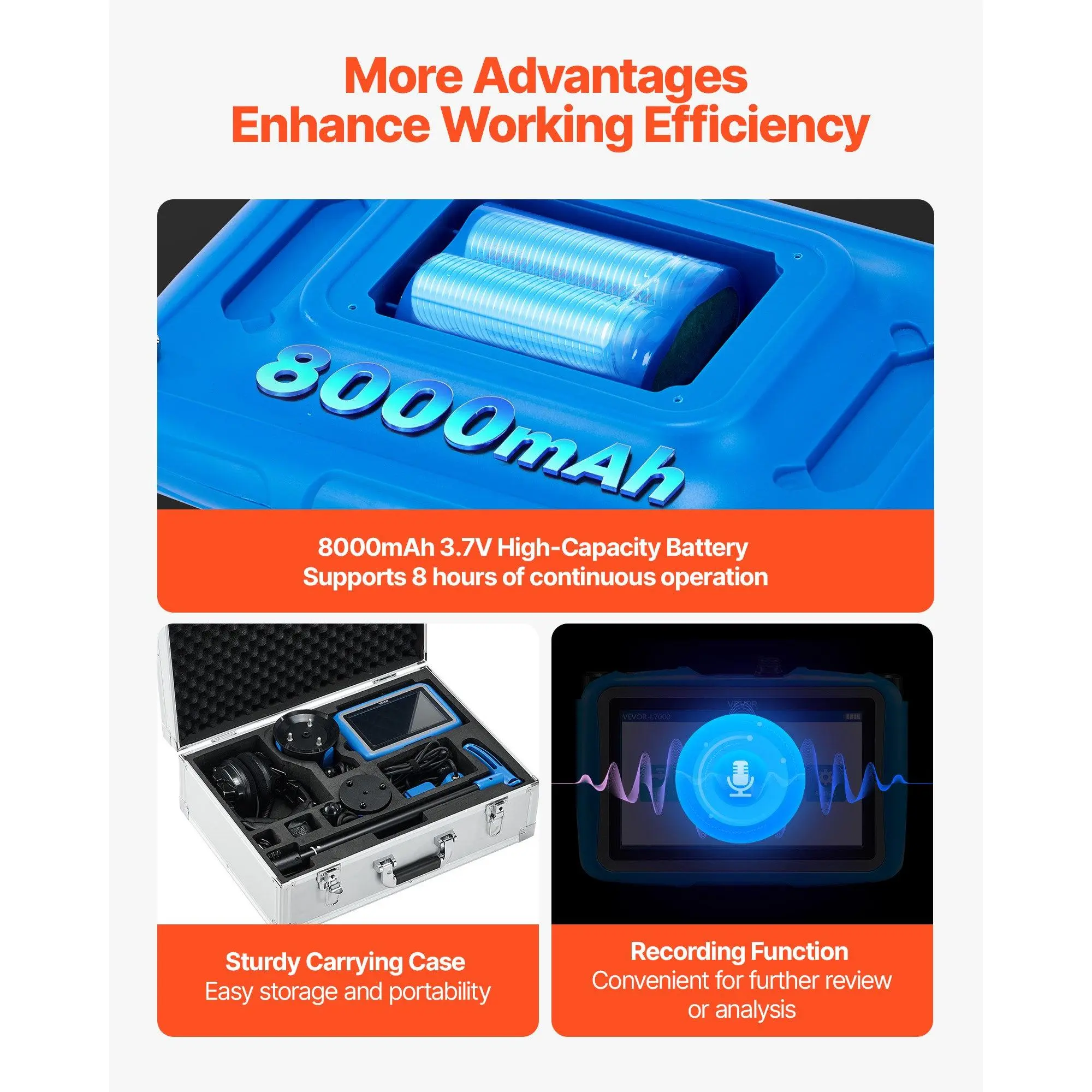 VEVOR Pipe Water Leak Detector with 4 Sensors, 1Hz-10000Hz, 7 Touchscreen Underground Plumbing Leakage Detection Locator with 3 Listening Rods, Headphones, 8GB Card Carry Case for Indoors Outdoors