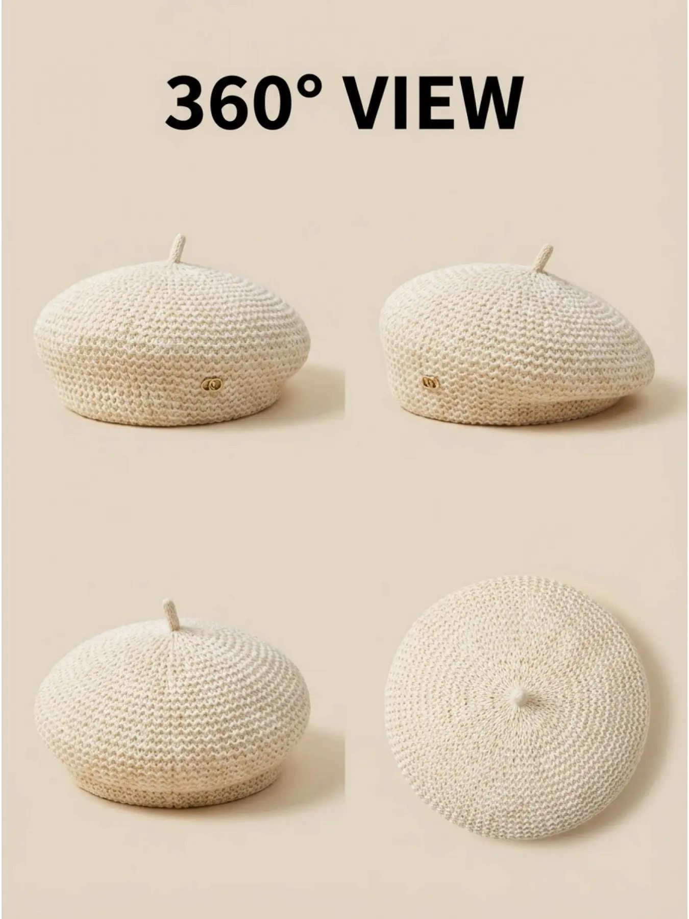 2026 Spring Summer New Hollow Out Pleated Beret Hat, Solid Color Small Charming Style, High Quality Sweet Elegant Beret, Sun Protection for Women, Lace-Trim Beret, Breathable island silk fabric for all-day comfort, Stylish Versatile chic style