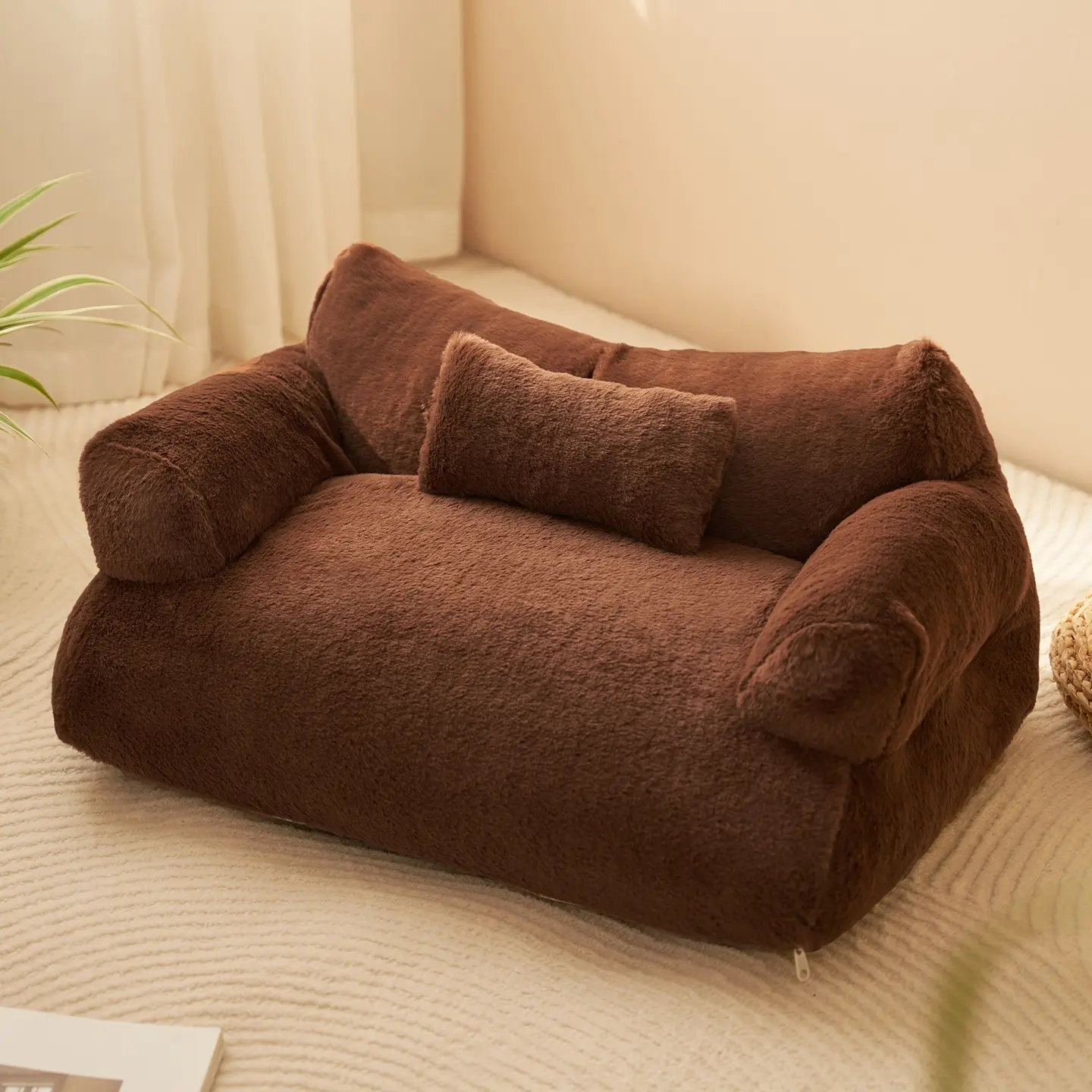 All-Season Pet Sofa Bed| Ultra Soft Warm Dog/Cat Bed - Washable Removable Cover, Non-Slip Bottom for Small to Medium Pets