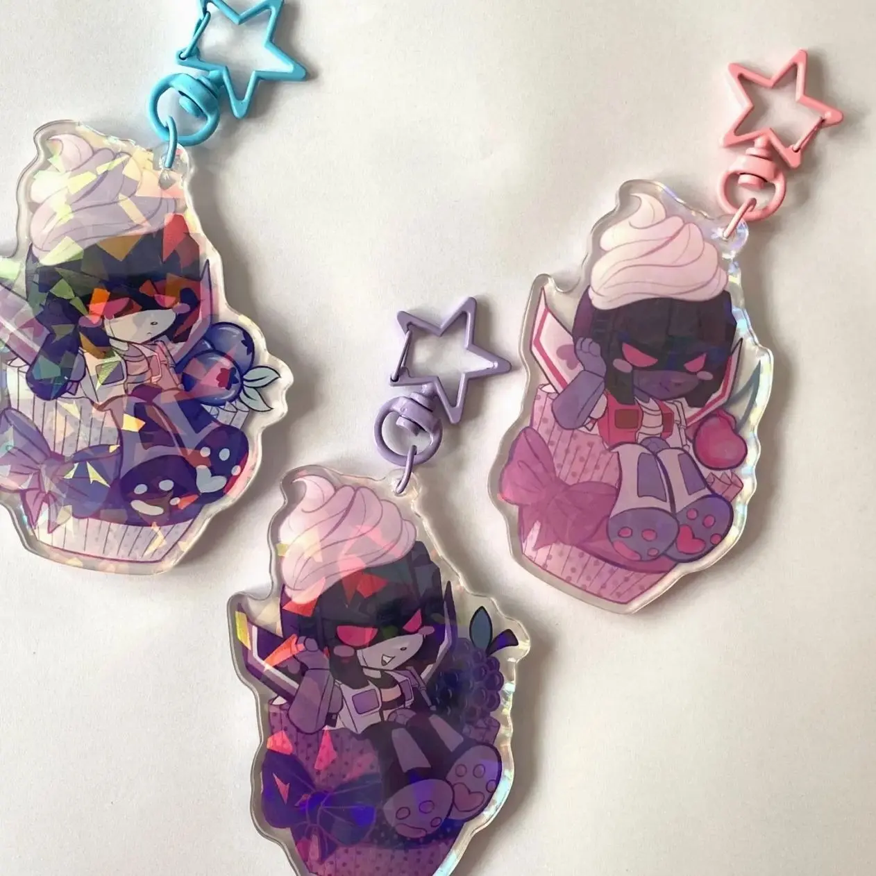 5. 3 ops Elite Trine Cupcake Acrylic Keychain, Anime Style Bag Charm Gifts