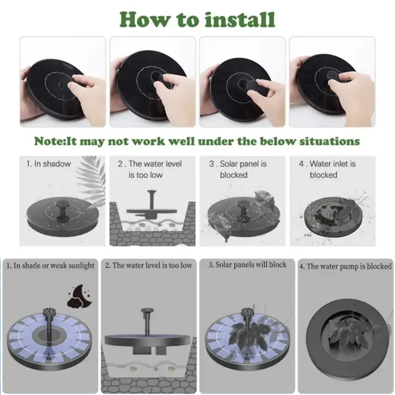 【Solar Powered】: Harnesses solar energy to operate, making it eco-friendly and cost-effective for outdoor water features.