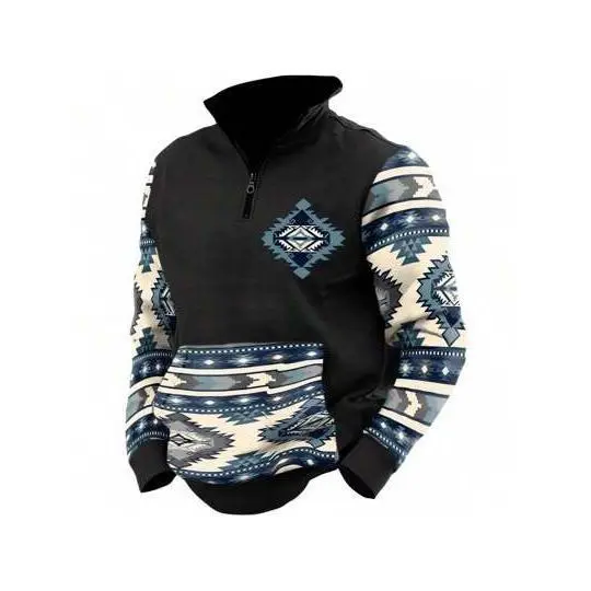 Mens Cowboy Vintage Bull Head Print Western Sweatshirt For Men Casual Long Sleeve 1/4 Zip Pullover Menswear Clothing
