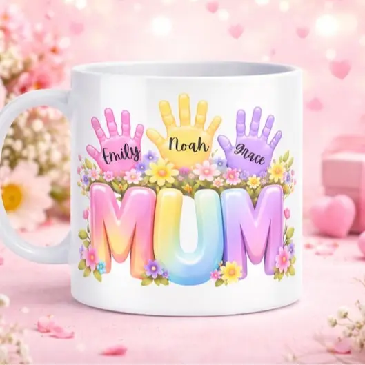 Custom Kids Mum Hand Mug | Mama Mug Design | Floral Mom | Mother's Day, Mom Birthday Present, Unique Ceramic Glassware for Birthday