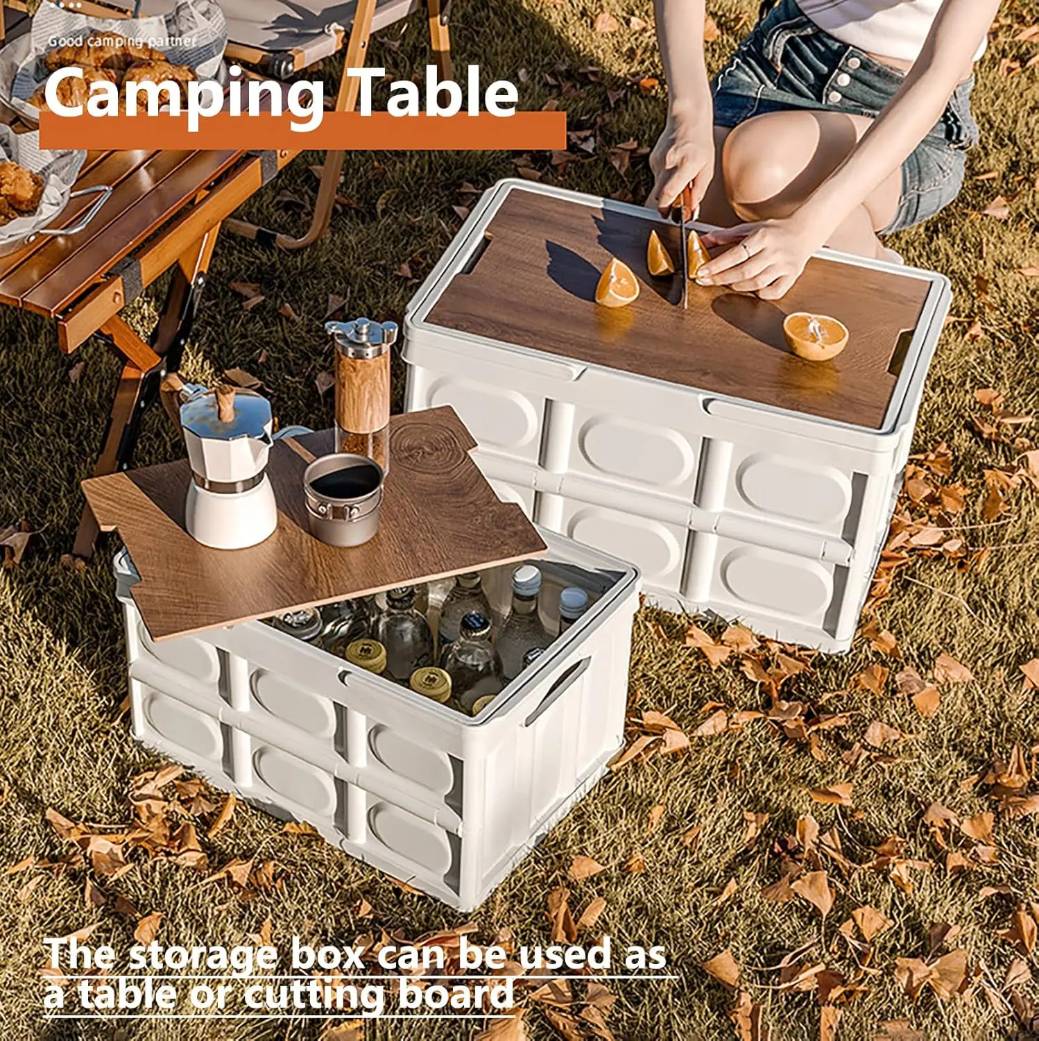 This camping organizer has a strong load capacity. Use the wooden lid as a table or chair. Place snacks or drinks on it. It's a practical addition to your outdoor gear.