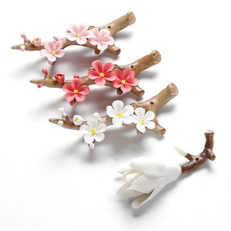 Each piece is meticulously crafted from premium ceramic, featuring intricate 3D hand-sculpted floral details (cherry blossom, plum blossom, magnolia) on a realistic branch design.Designed to securely hold your favorite incense sticks while catching ash mess-free, these versatile pieces also double as decorative wall hooks, desktop ornaments, or mini plant holders, making them a must-have for wellness enthusiasts and home decor lovers alike.