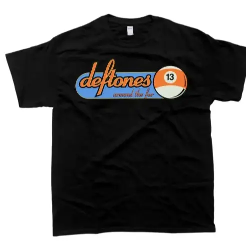 VTG 1998 Deftones "Around the Fur" 13 Ball Tour T-Shirt, classic for men and women. This black tee features the band's iconic logo and a 13 ball design. Perfect for fans of the 1998 tour.