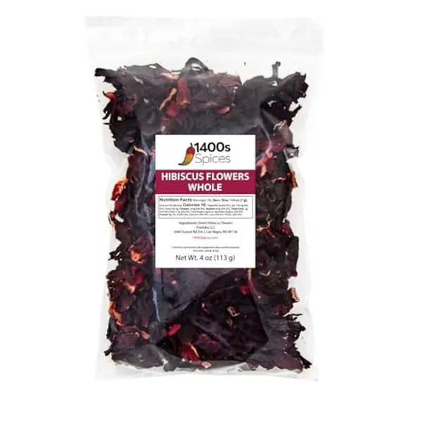 4oz Dried Hibiscus Flowers perfect for Tea and Mexican Agua Fresca, Flor de Jamaica, Sorrel Zobo Whole Flowers and Petals by 1400s Spices