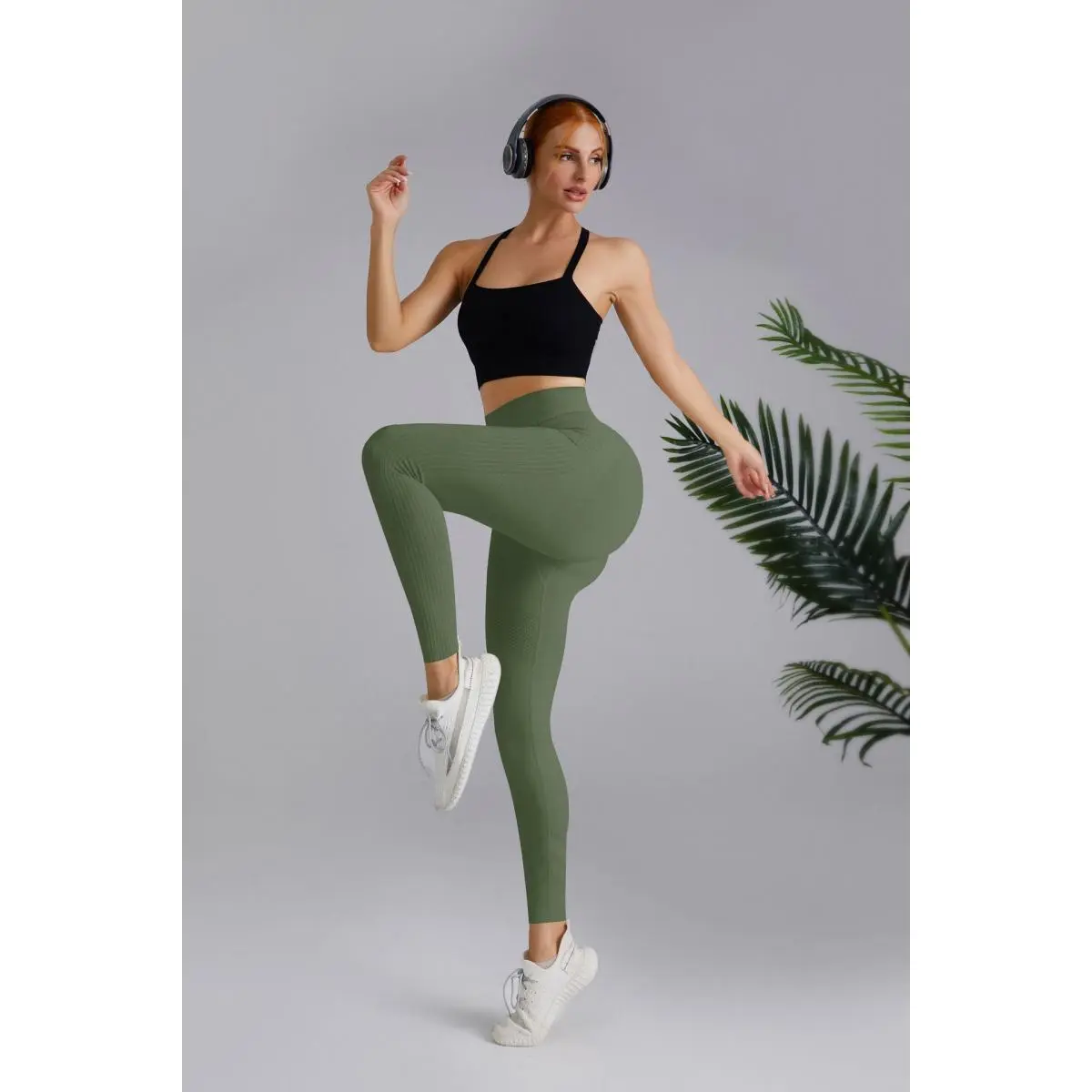 OQQ Women's 2 Piece High Waist Leggings Cross Over Yoga Ribbed Seamless Workout Athletic Exercise Leggings Tight Fitting Pants Gym Outfits