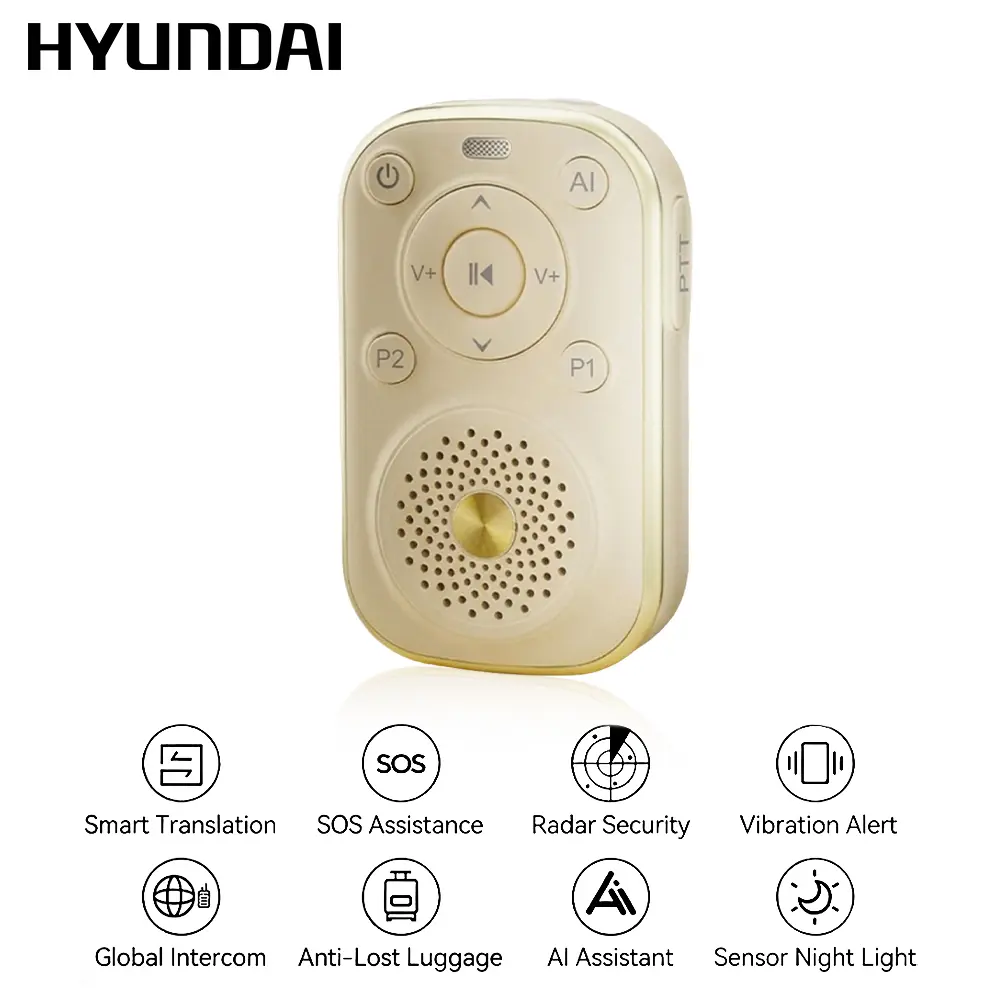 HYUNDAI VA18 8-in-1 Smart AI Translator Speaker, Support Translation, SOS Emergency Assistance, Global Intercom, Anti-Lost Alert, AI Assistant, Radar Detection & Vibration Alert, Portable Audio Device for Travel, Compatible with Android & iOS