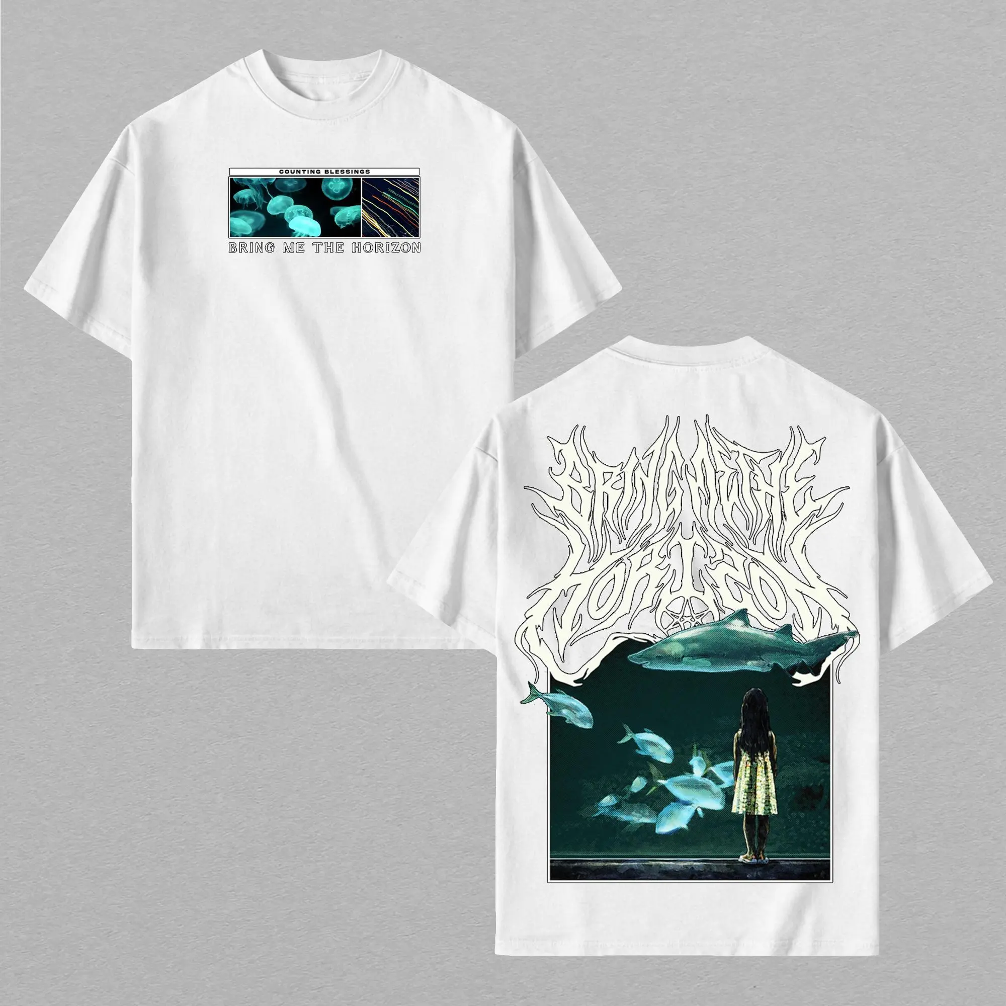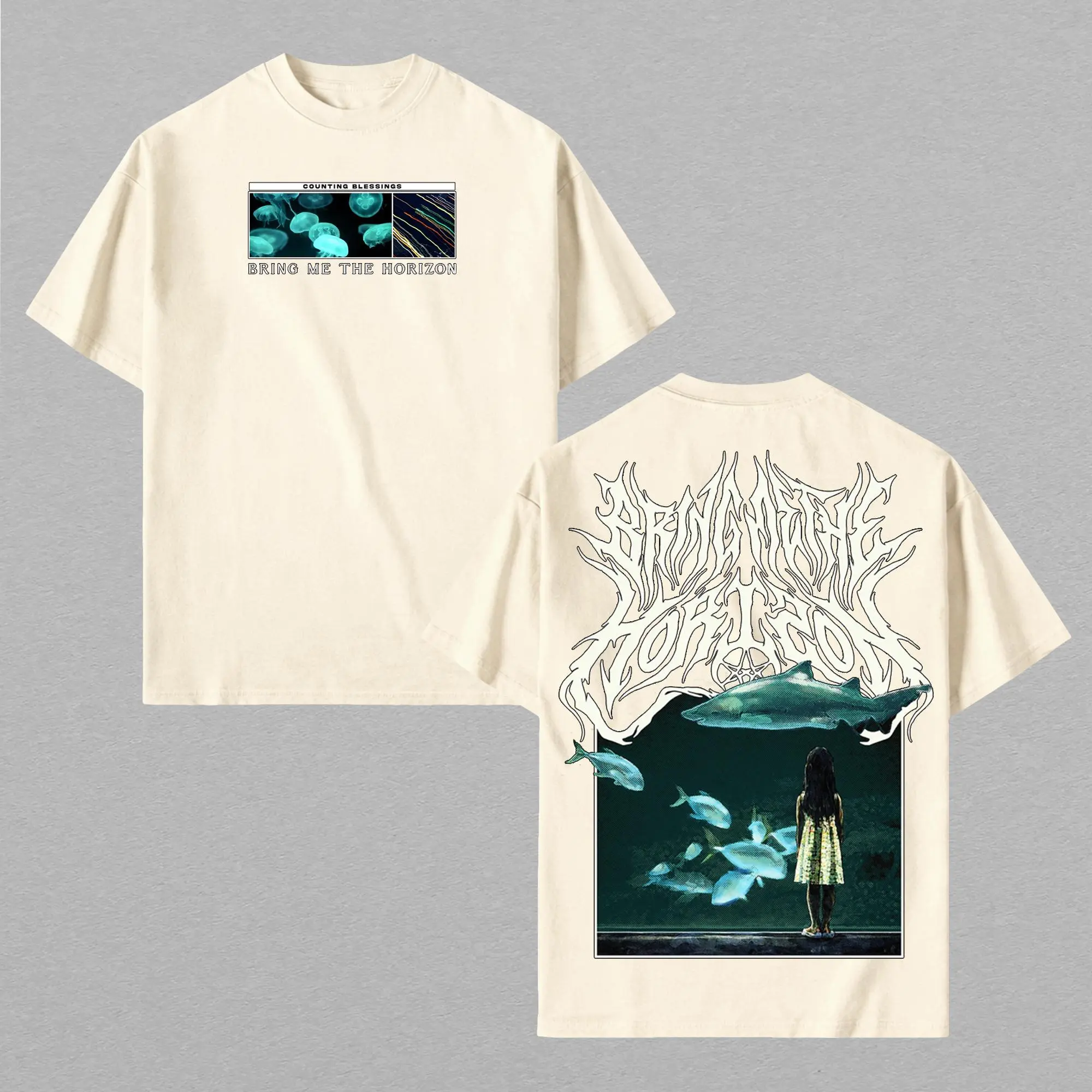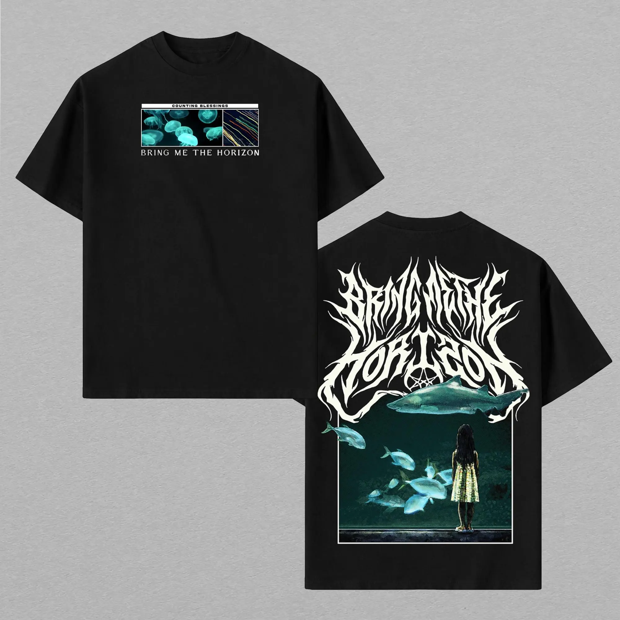 Bring Me The Horizon Counting Blessings Oversized Graphic Tees, Washed Vintage Album Shirt, Unisex Deathcore Band T-Shirt for Men Women, Heavy Music Graphic Tee, Streetwear Fashion