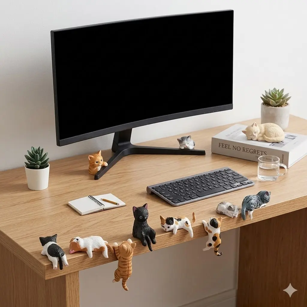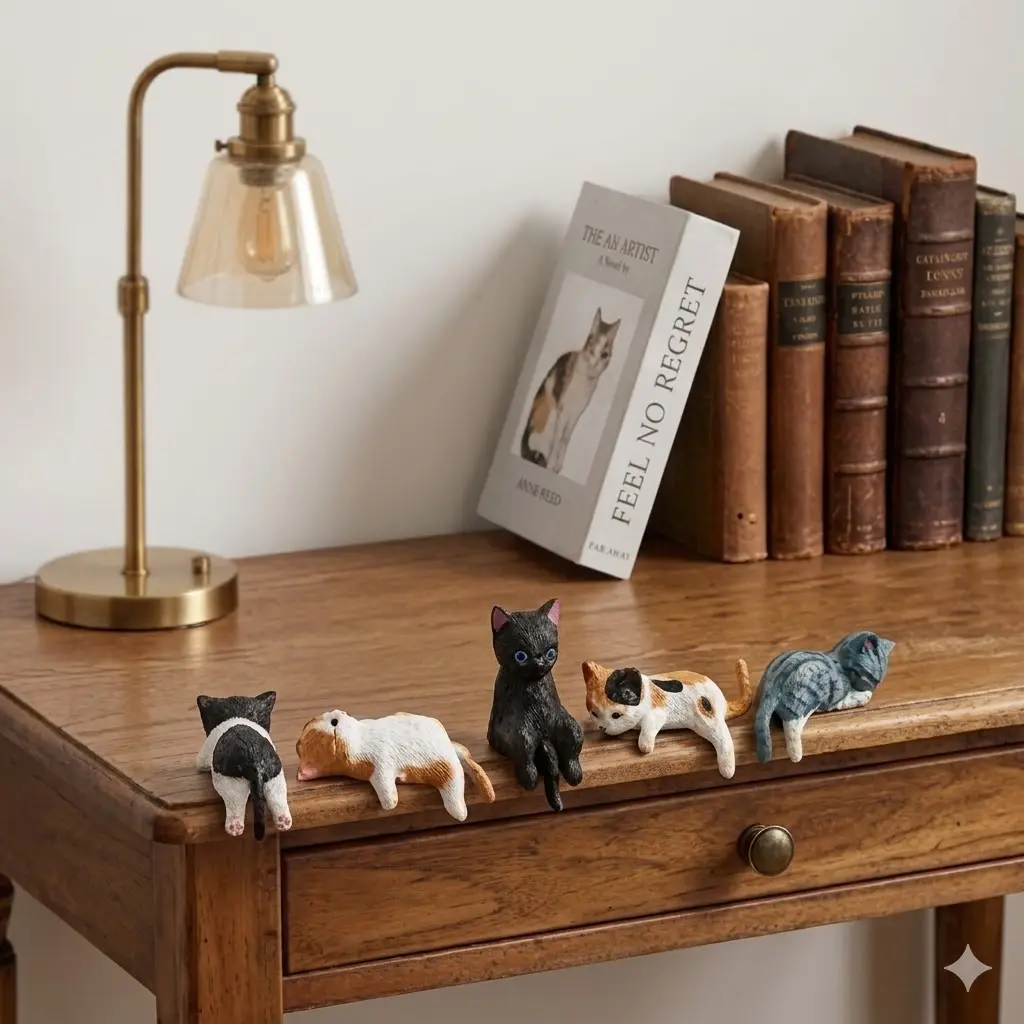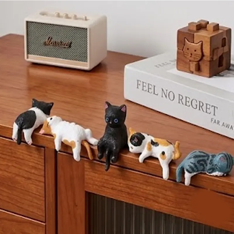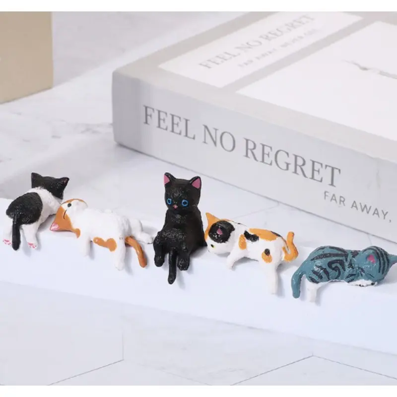 2026 Mini Cat Desk Figurines Set of 5 Resin Multi Pose Kitty Ornaments Cute Cartoon Style Desk Companions for Home Offices Cubicles Playful Charming Desktop Decoration