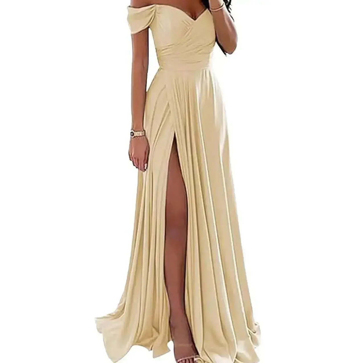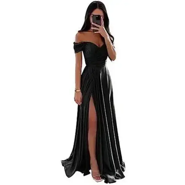 Eatures: Off Shoulder Satin Bridesmaid Dresses with Slit, Bodycon Mermaid Bridesmaid Dresses for Women, Ruched Satin Formal Party Dresses with Pleats, Mermaid Bridesmaid Dresses, The Off Shoulder bridesmaid dress is the best choice for your different occasions.Occasion: The satin off shoulder bridesmaid dress is perfect for Bridesmaid dresses, wedding guest party dresses, cocktail dresses, formal party dresses, evening dresses, prom party dresses, birthday party dresses, graduation dresses, wedding violin concerts, engagements, and Any Other Formal and Semi-Formal Occasions.