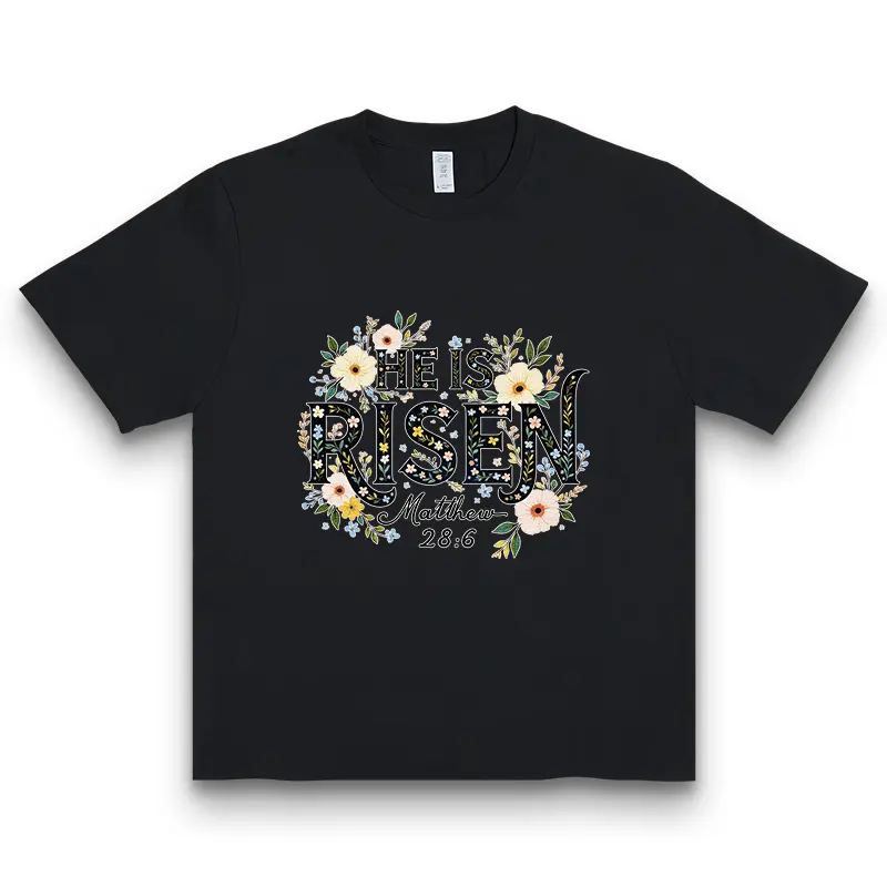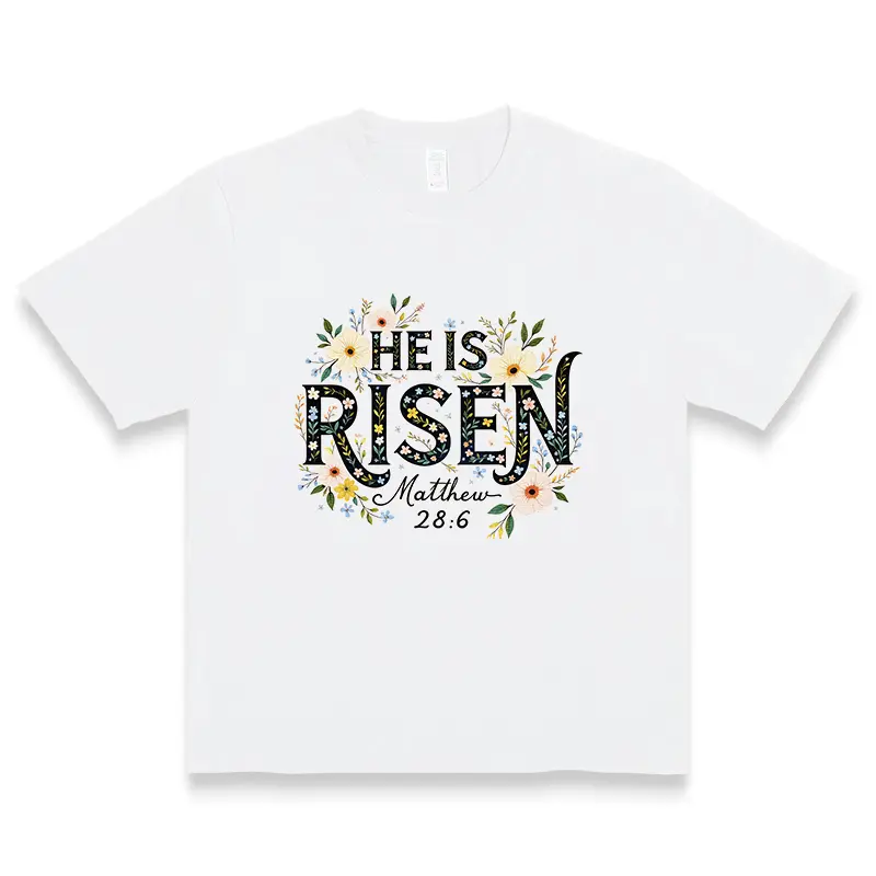 5. He Is Risen Matthew 28:6 Floral Cross Graphic Cotton Tshirt For Christian Women