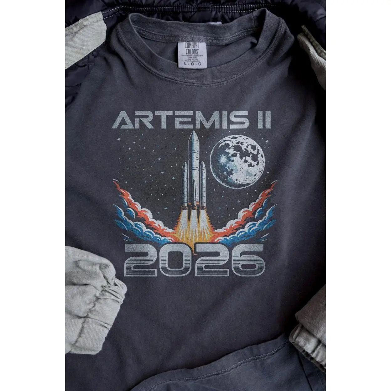 Comfort Colors Unisex Retro Artemis II 2026 Rocket Launch Graphic T-Shirt, Vintage Space Exploration Tee Back To The Moon Tee Unique Gift for Space Lover Gift