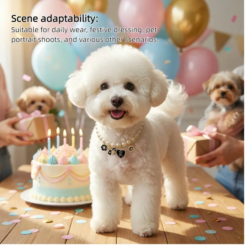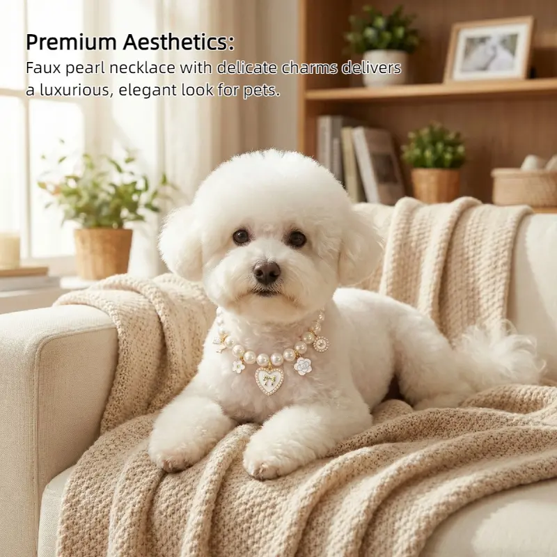 Pet Pearl Necklace Collar | Vintage Luxury Bow & Camellia Pet Jewelry Pet Collar | Pearl Necklace Collar for Cats & Dogs | Vintage Luxury Bow | Heart Charm | Noiseless Design | Camellia Decor Wedding Birthday Party Photo Props | Fashion Pet