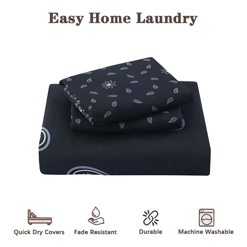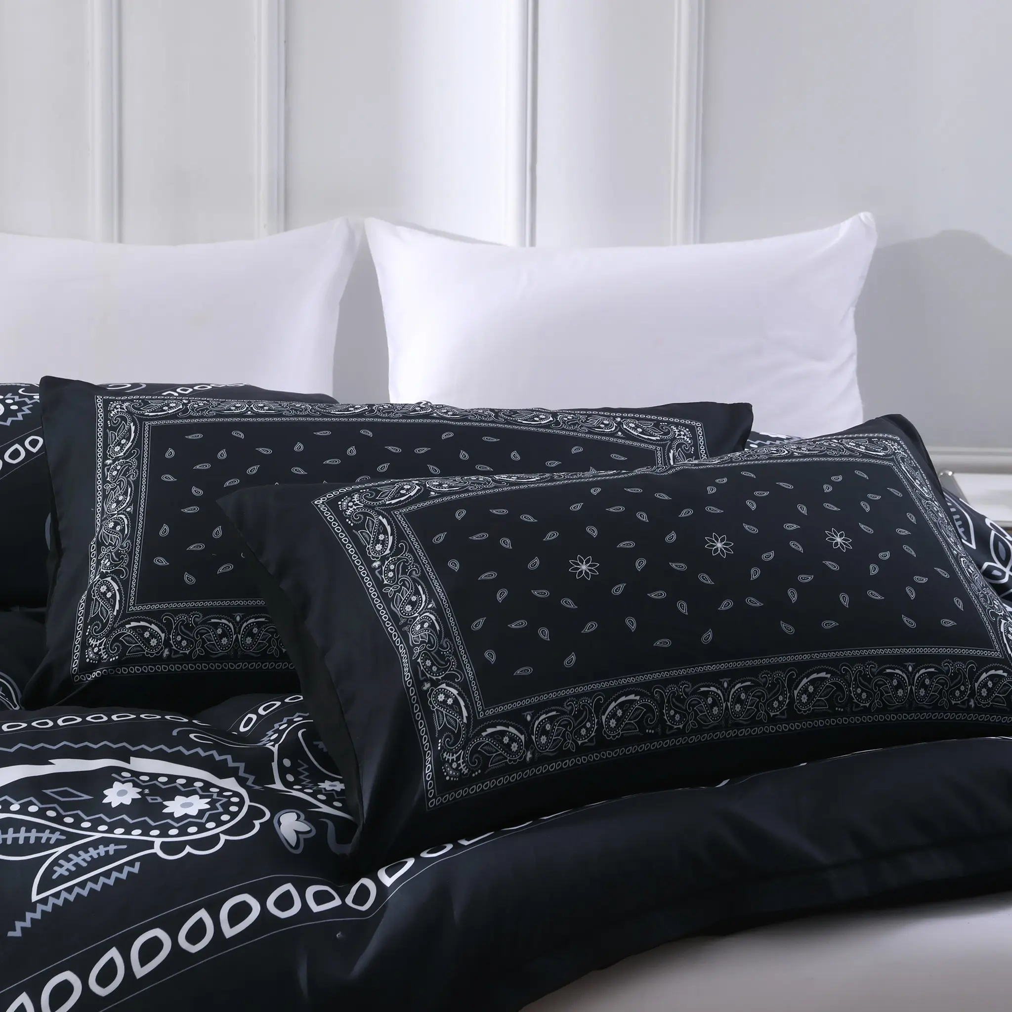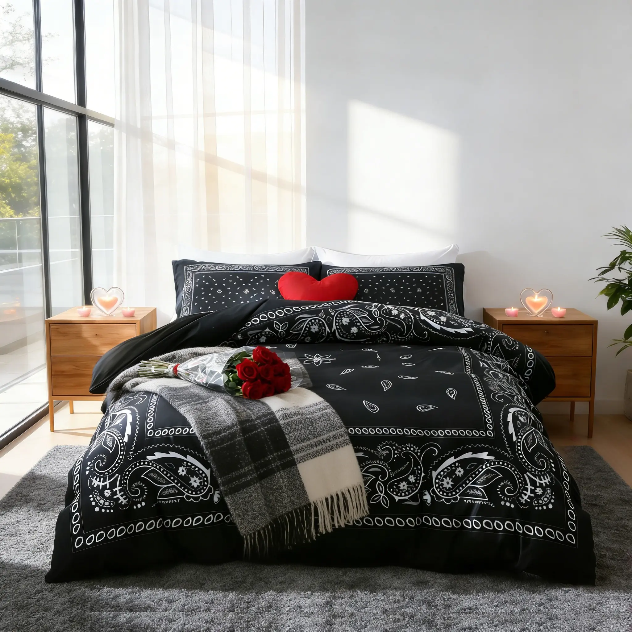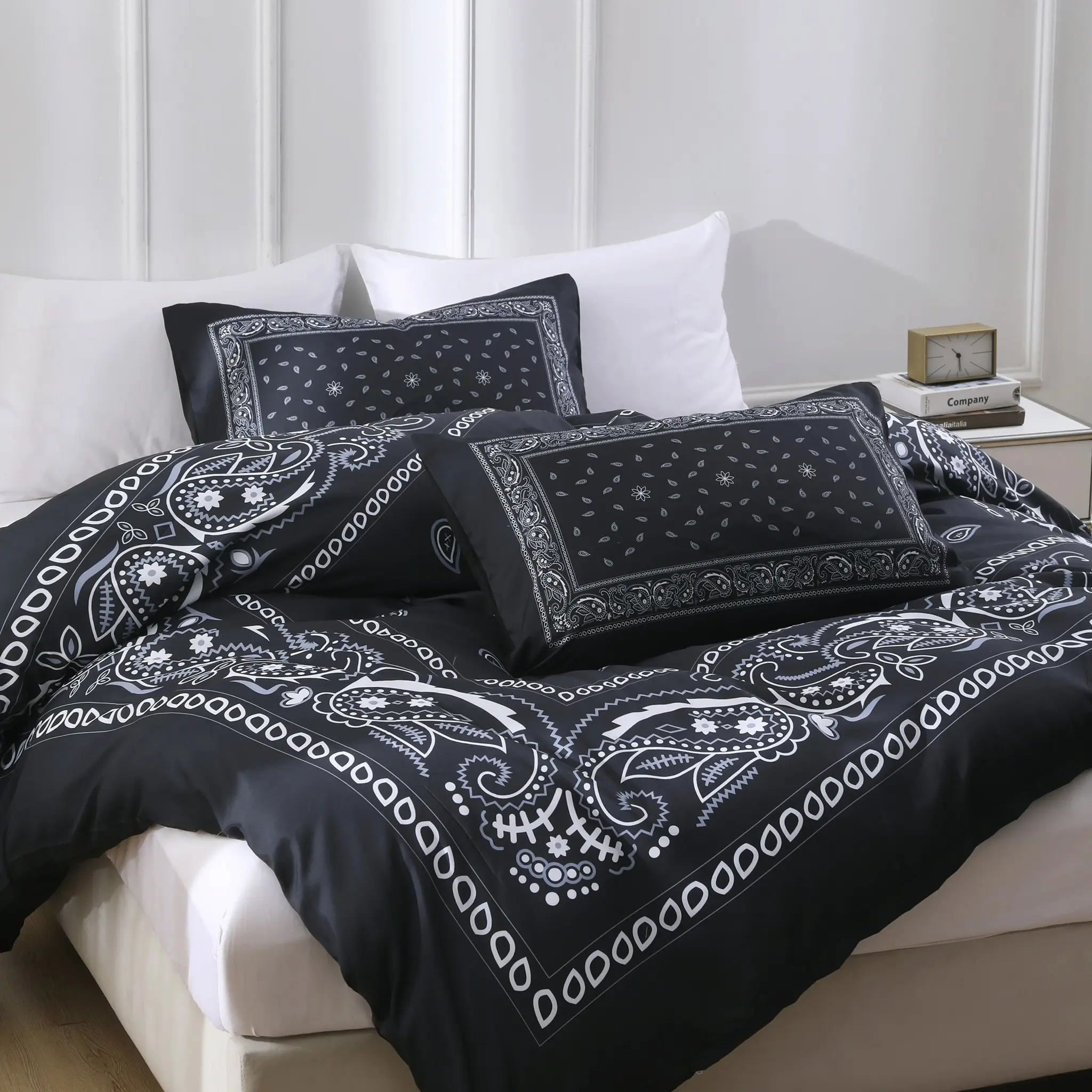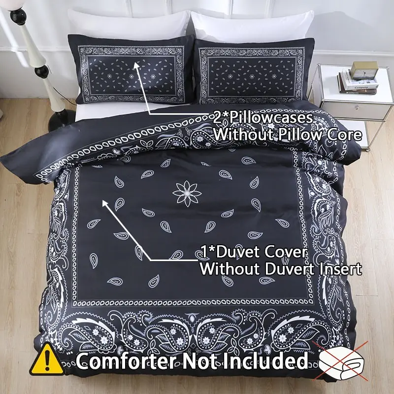 3pcs Black & White Paisley Print Bedding Set, Includes 1 Duvet Cover + 2 Pillowcases No Insert, Comfortable Sleep, Perfect Gift for Dorm Room, All Seasons
