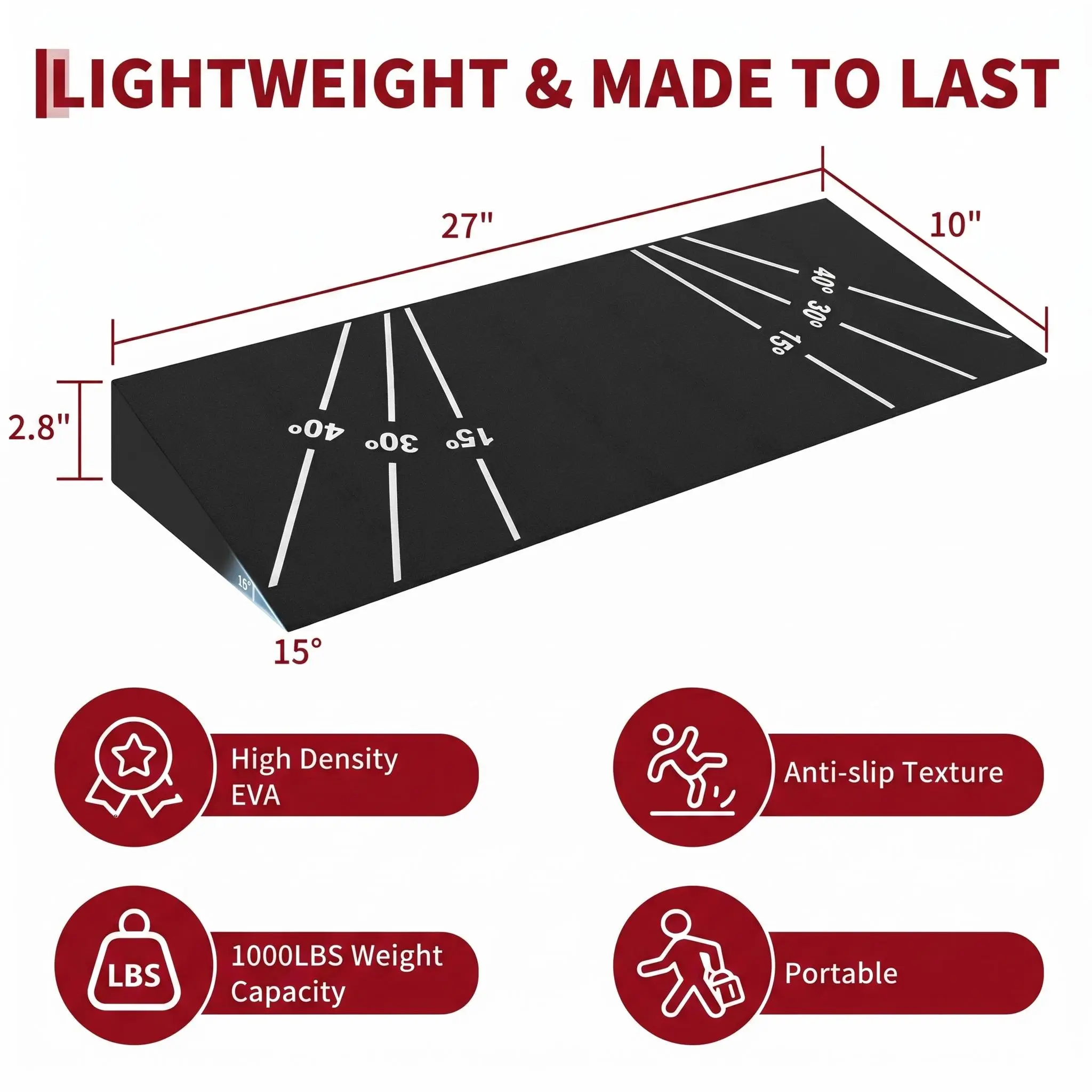 ·15° HEEL ELEVATION FOR BETTER SQUATS: The 15-degree squat wedge helps elevate your heels for deeper squat positions and more consistent training mechanics for squats, split squats, and strength work.