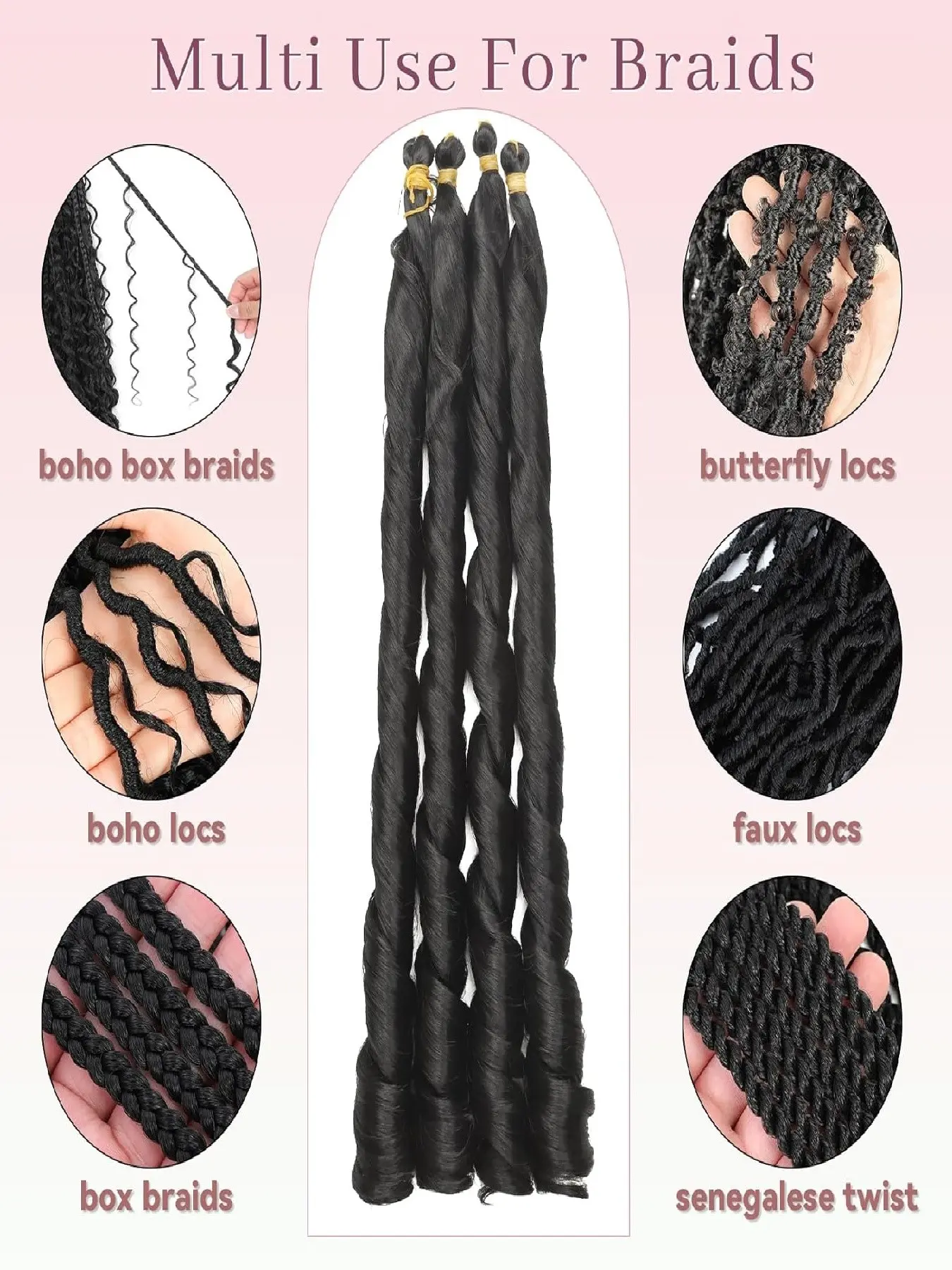 【Multiple Packs】: Includes 4 packs of 24-inch French curl braiding hair, providing ample material for various styles.
