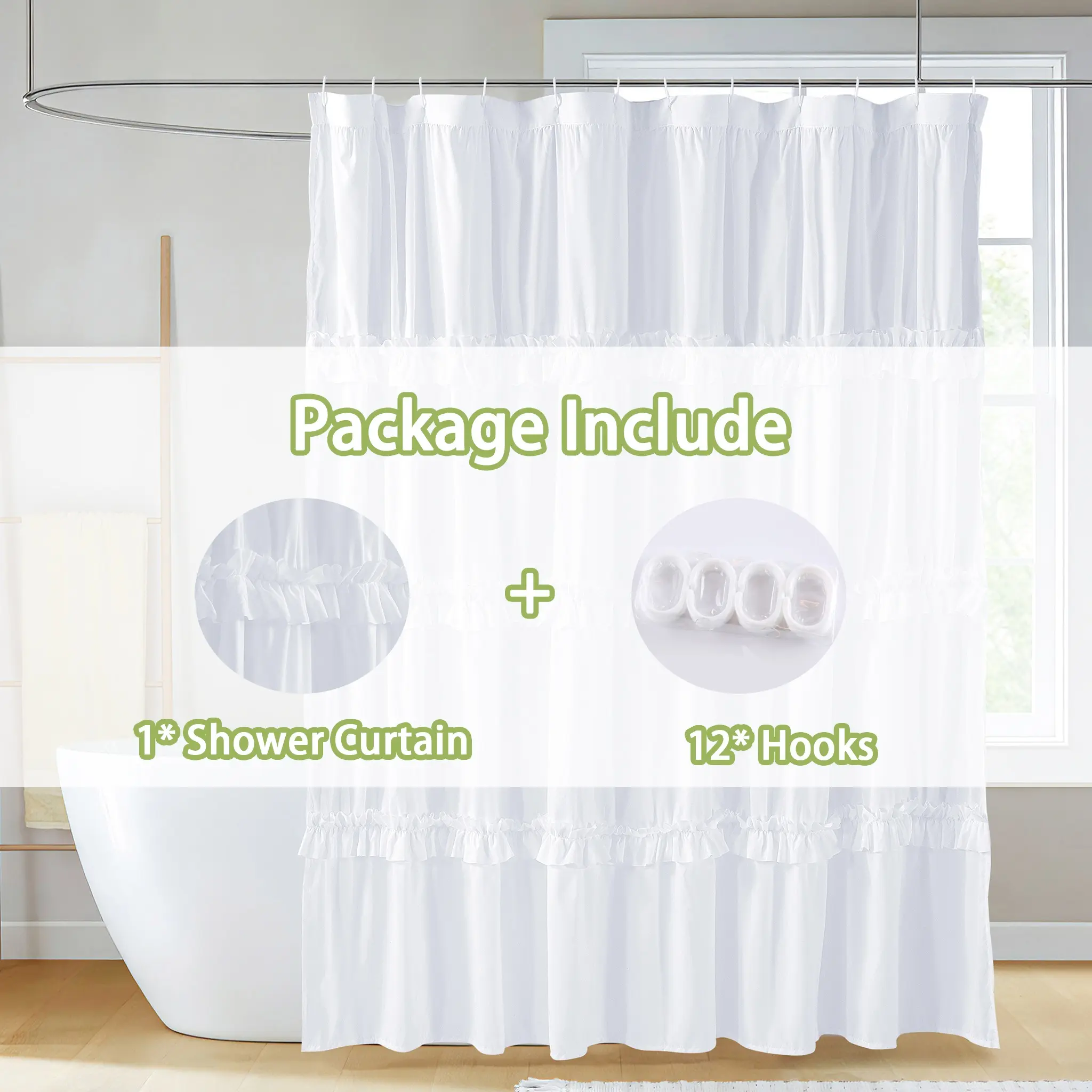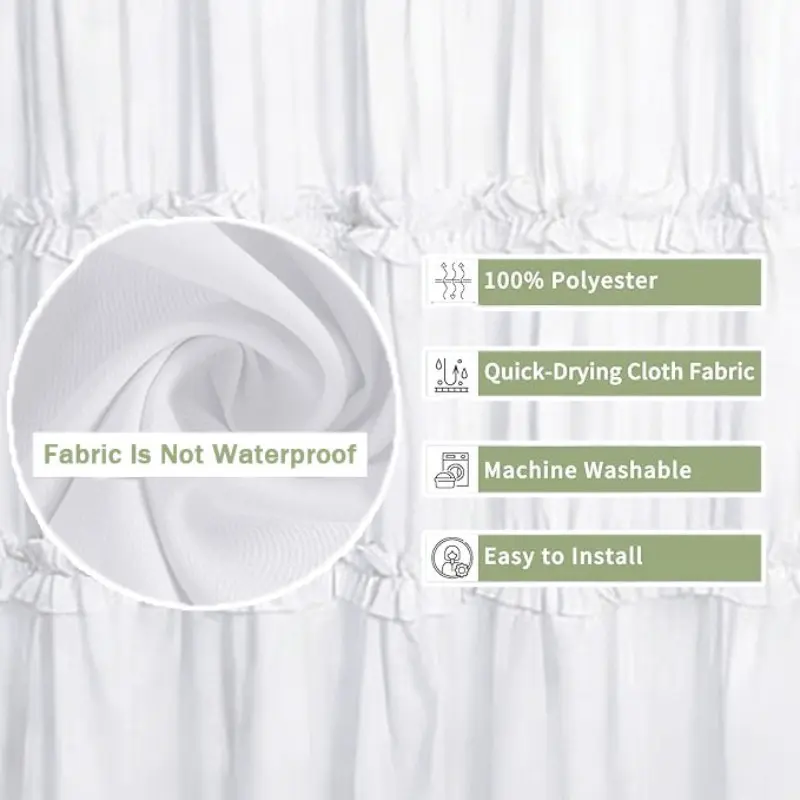 Vintage Plain Ruffled Shower Curtain, Soft Polyester Fabric, Bathroom Closet Window Decor, Hotel Bedroom Salon Curtains