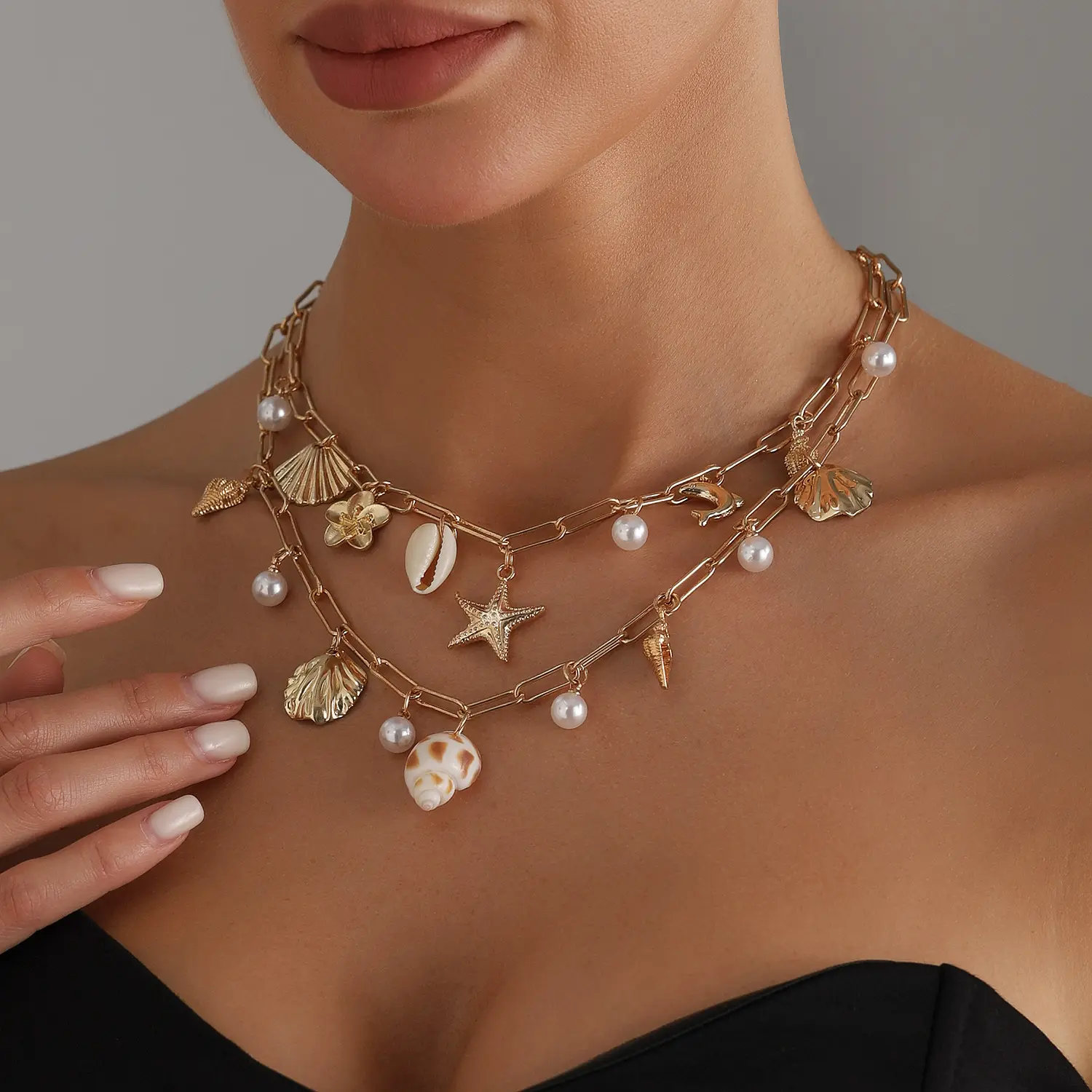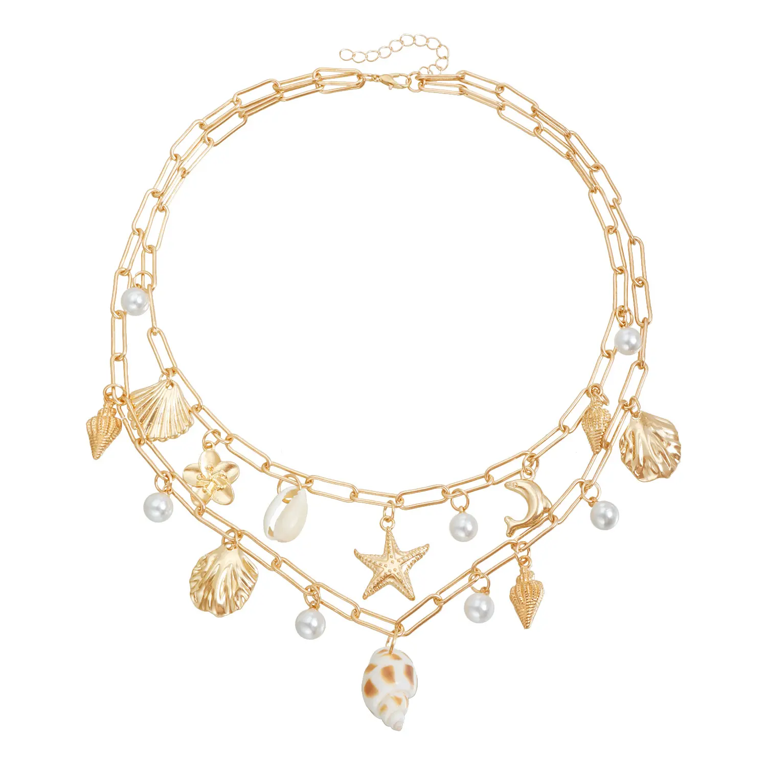 Starfish & Seashell Conch Necklace • Beach Vacation Jewelry for Women