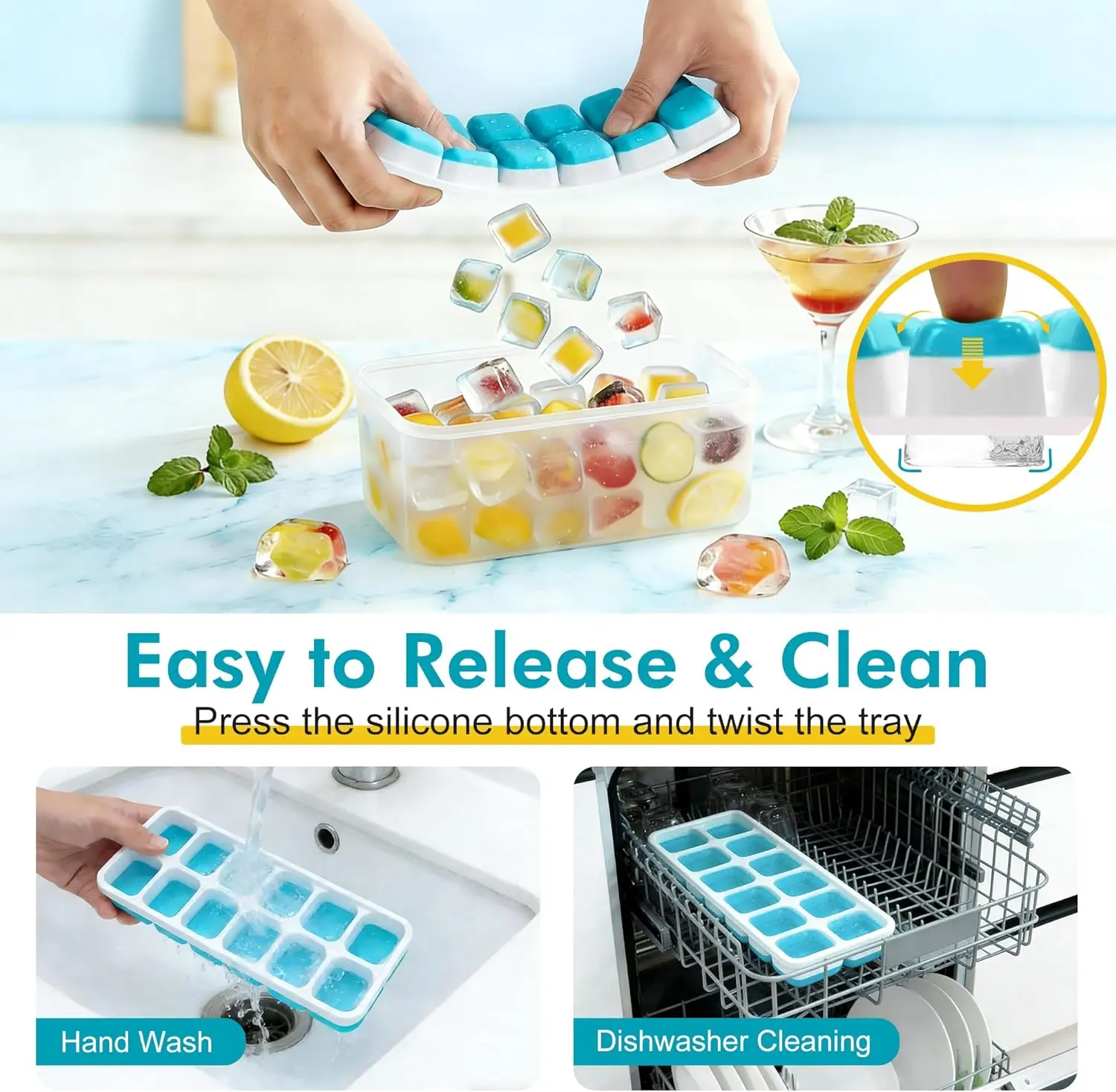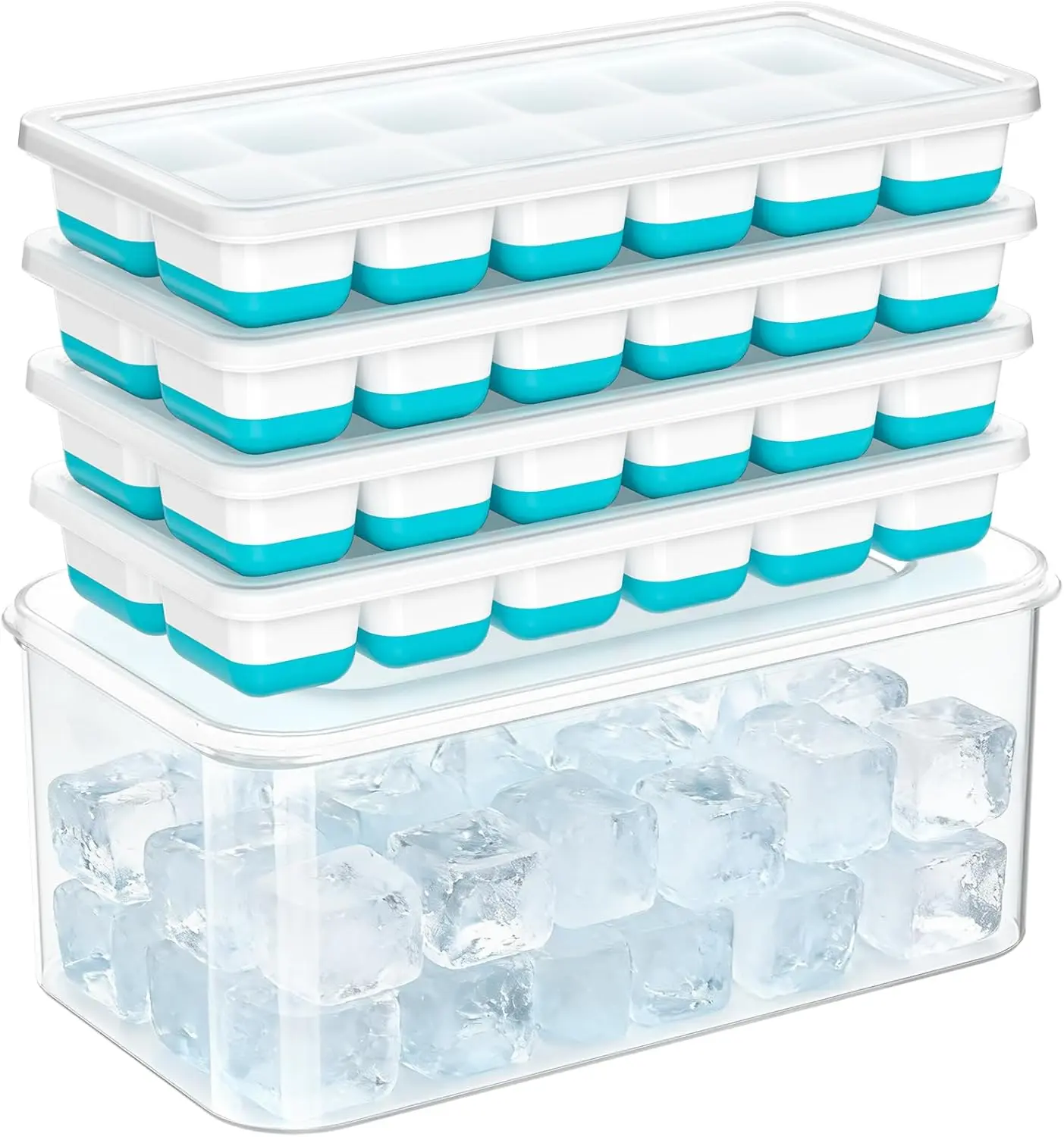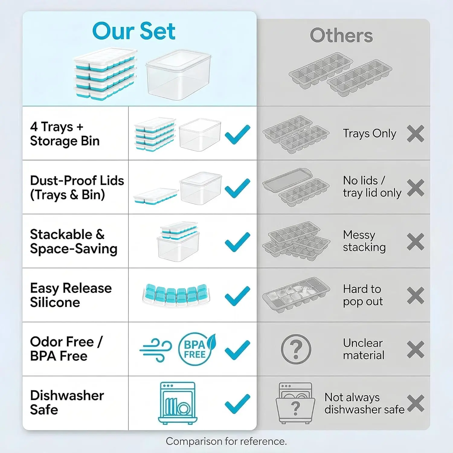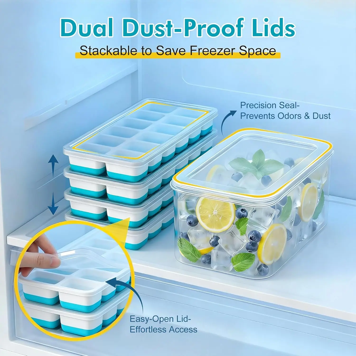 ️ Premium Stackable Ice Cube Tray Set with Storage Bin