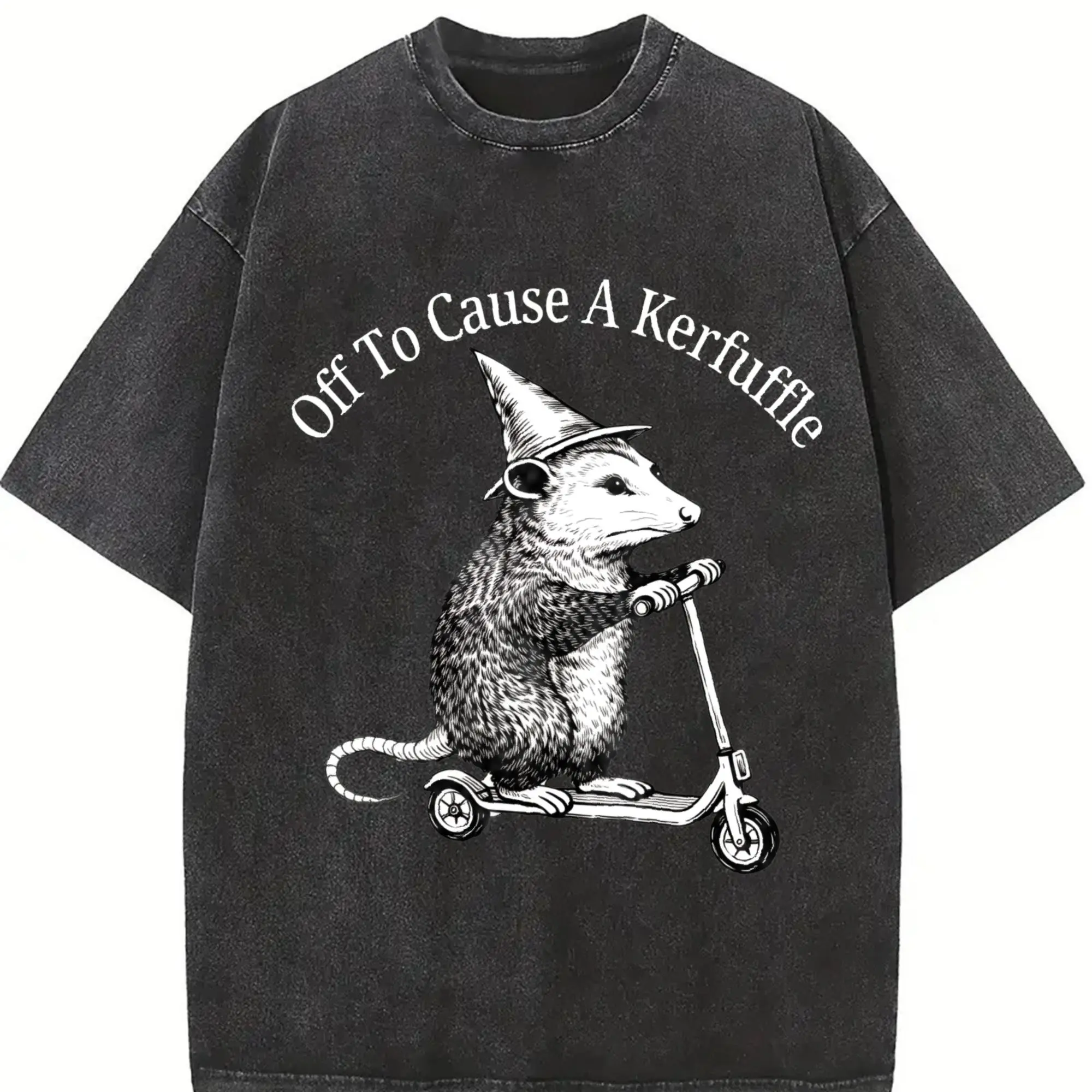 Comfort Colors Off To Cause A Kerfuffle Shirt, Funny Opossum Scooter T-Shirt, Mental Health Tee, Sarcastic Humor Shirt, Animal Lover Gift