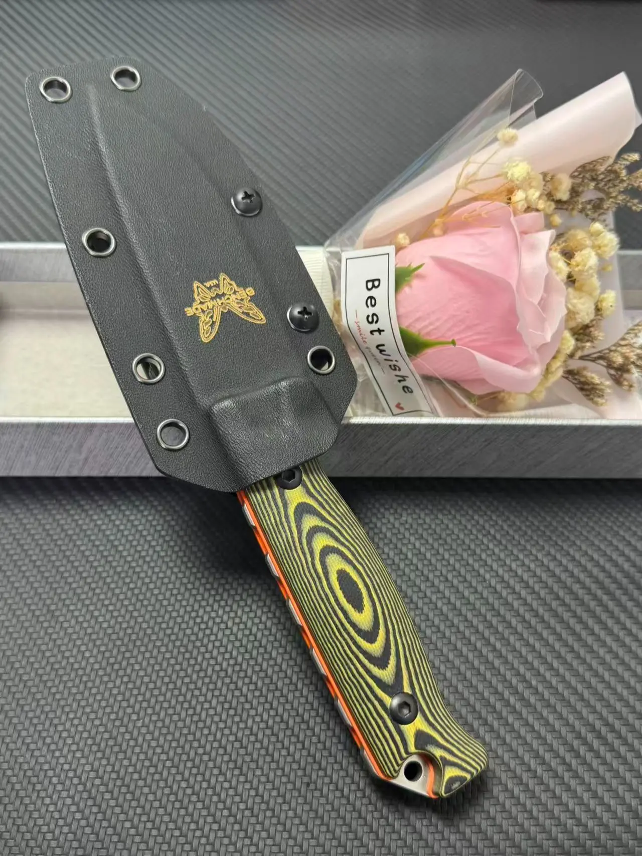 BM 15002 Portable Fixed-Blade Outdoor Tool with S90V Blade and G10 Handle: A versatile outdoor tactical tool ideal for camping, hunting, and EDC (Everyday Carry)