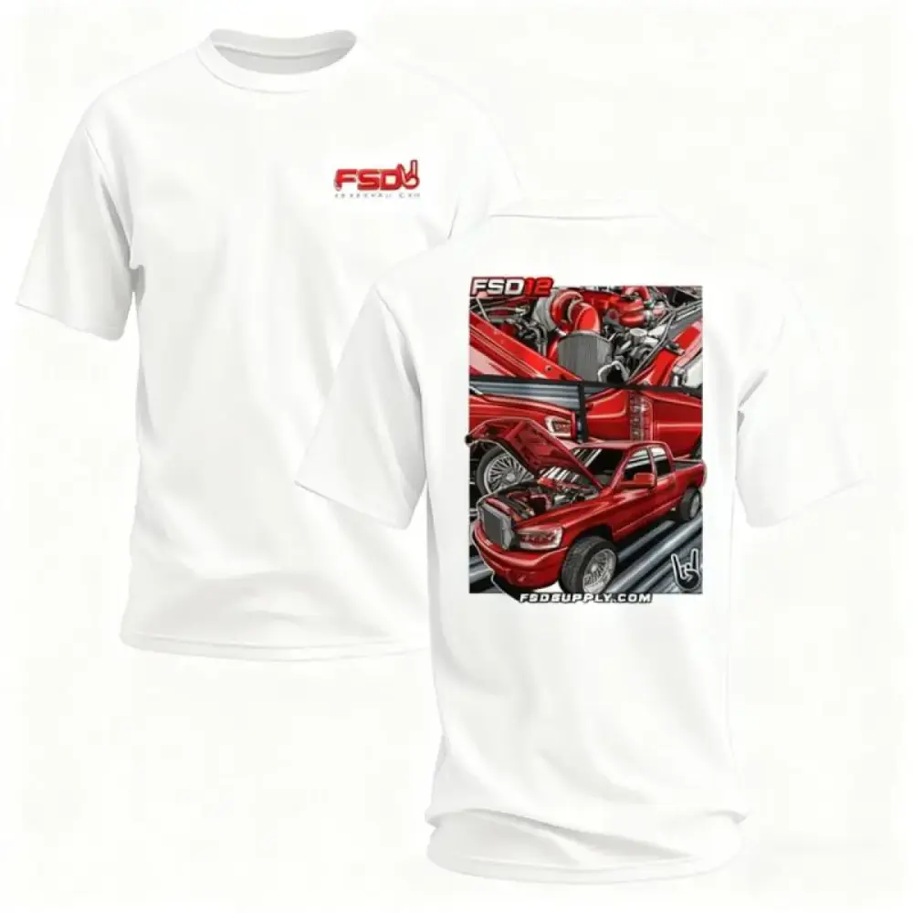 ·Custom Engine Bay Design: The back of the T-shirt showcases a detailed engine bay graphic.
